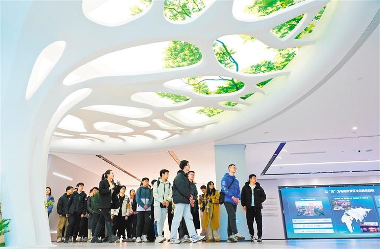 11月28日,来自华中科技大学的师生在武汉产业创新发展研究院展厅参观。