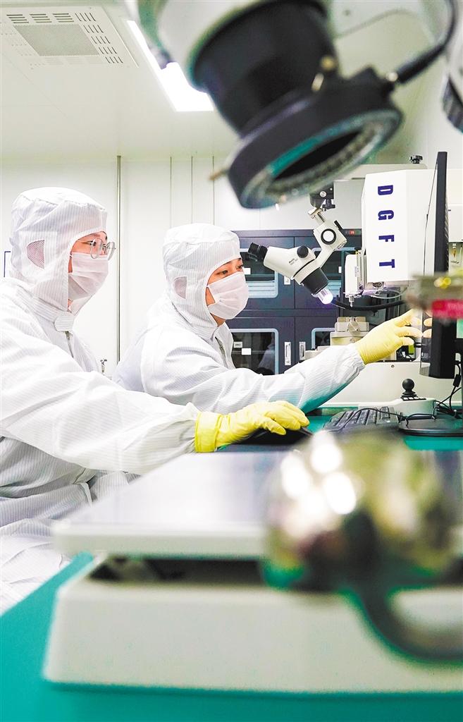 11月29日,中国光谷九峰山实验室,科研人员在进行研发、检测工作。该实验室去年投入运营,已有多项重大科技成果走出实验室,实现量产。