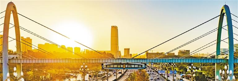 11月28日,“光谷光子号”空轨穿过武汉东湖高新区高新大道。这是国内首条空中悬挂式列车,于2023年9月26日开通。