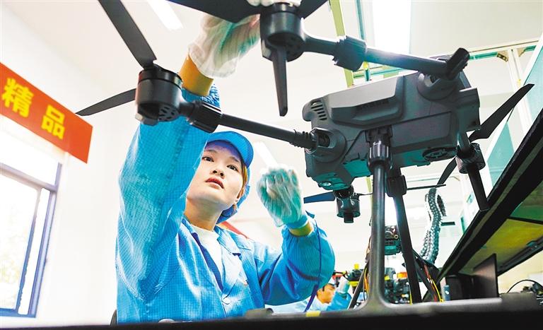 11月28日,普宙科技无人机生产线,工作人员在进行设备检测。该公司与武汉东湖高新区合作,建成了全国首个低空共享无人机应用示范区。
