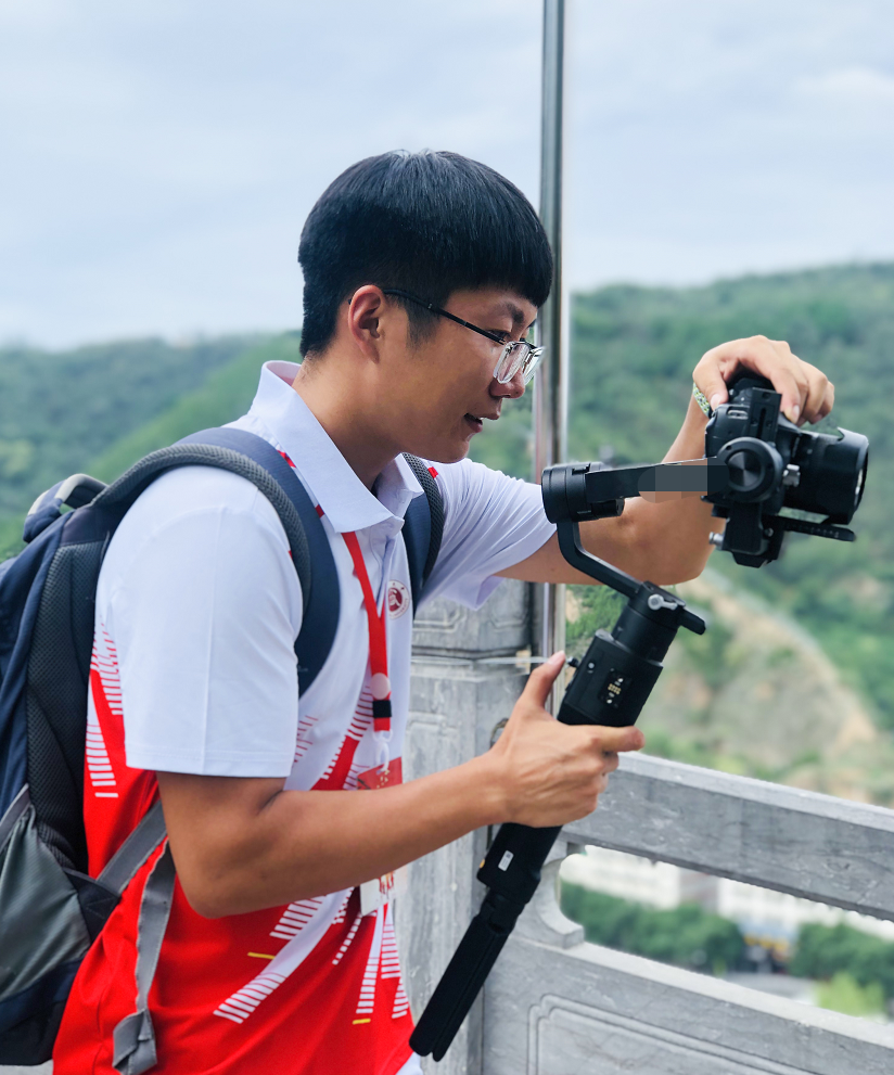 “我本身特别喜欢跑步,尤其是短跑,当时,手里的稳定器和摄像机加起来近8斤重,起跑前单用左手感觉拿不稳还打了个踉跄,但我马上调整好状态,特别在跑动时既要尽量保持画面稳定,又要保持速度还真是个不小的考验。”