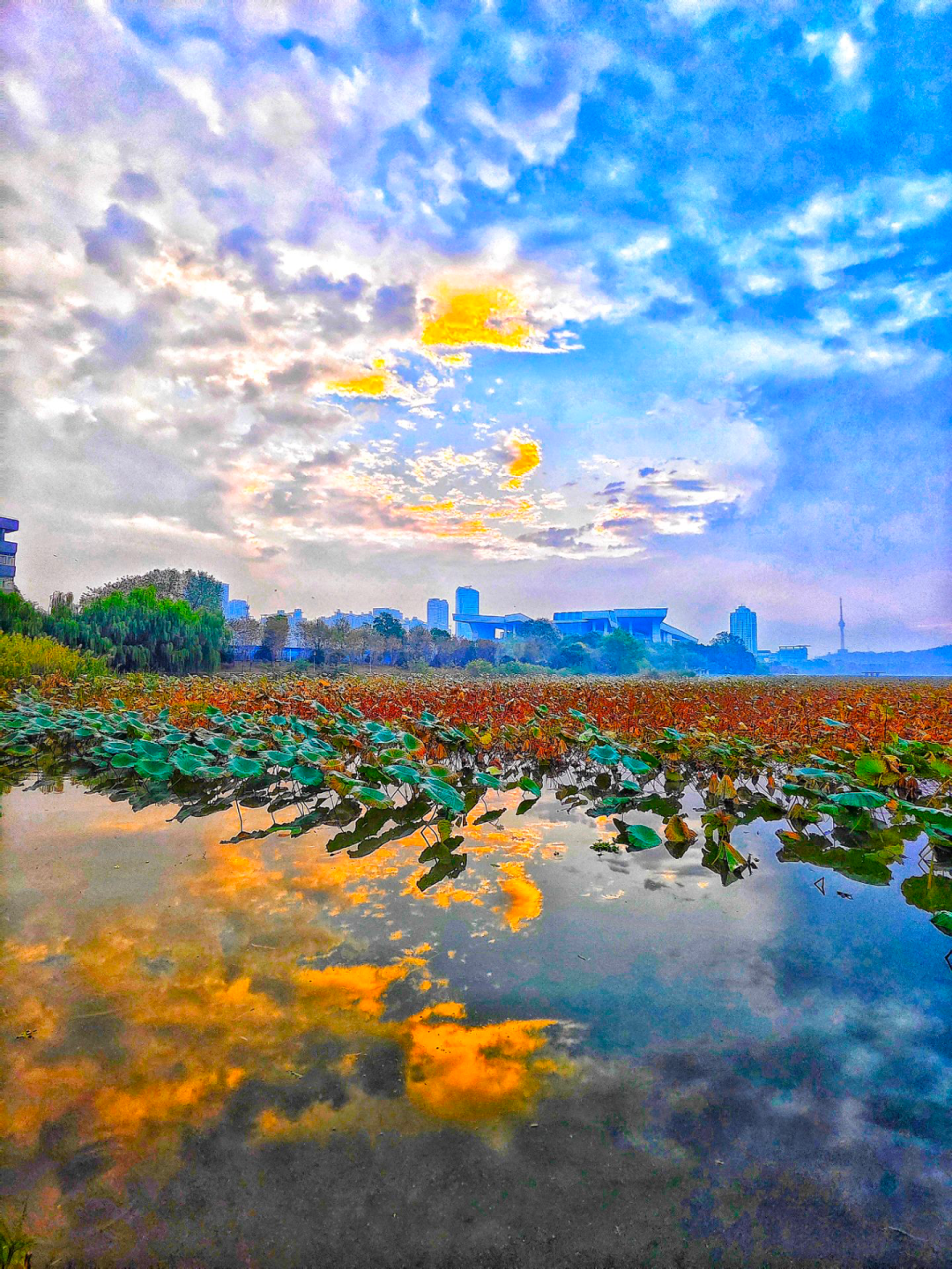 今天的太阳正好,今天的月湖起得真早!