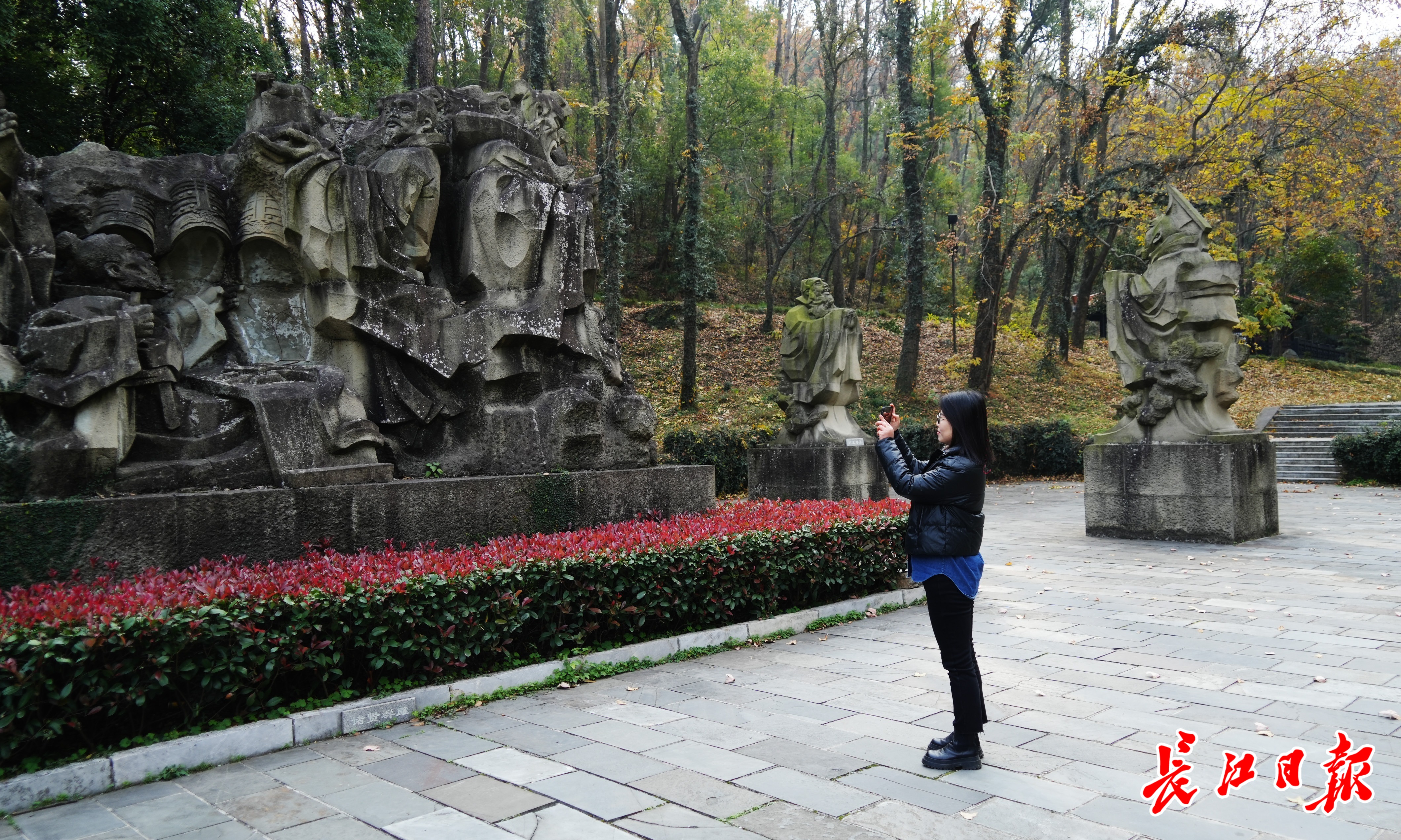 21日,长江日报记者抵达东湖磨山景区楚才园,偶遇正在此地拍照打卡的90后女生李晓晨及其朋友。趁着阳光正好,根据社交网络推荐的玩法,李晓晨在楚才园、南国哲思园、离骚碑沿线来了一场文化之旅。