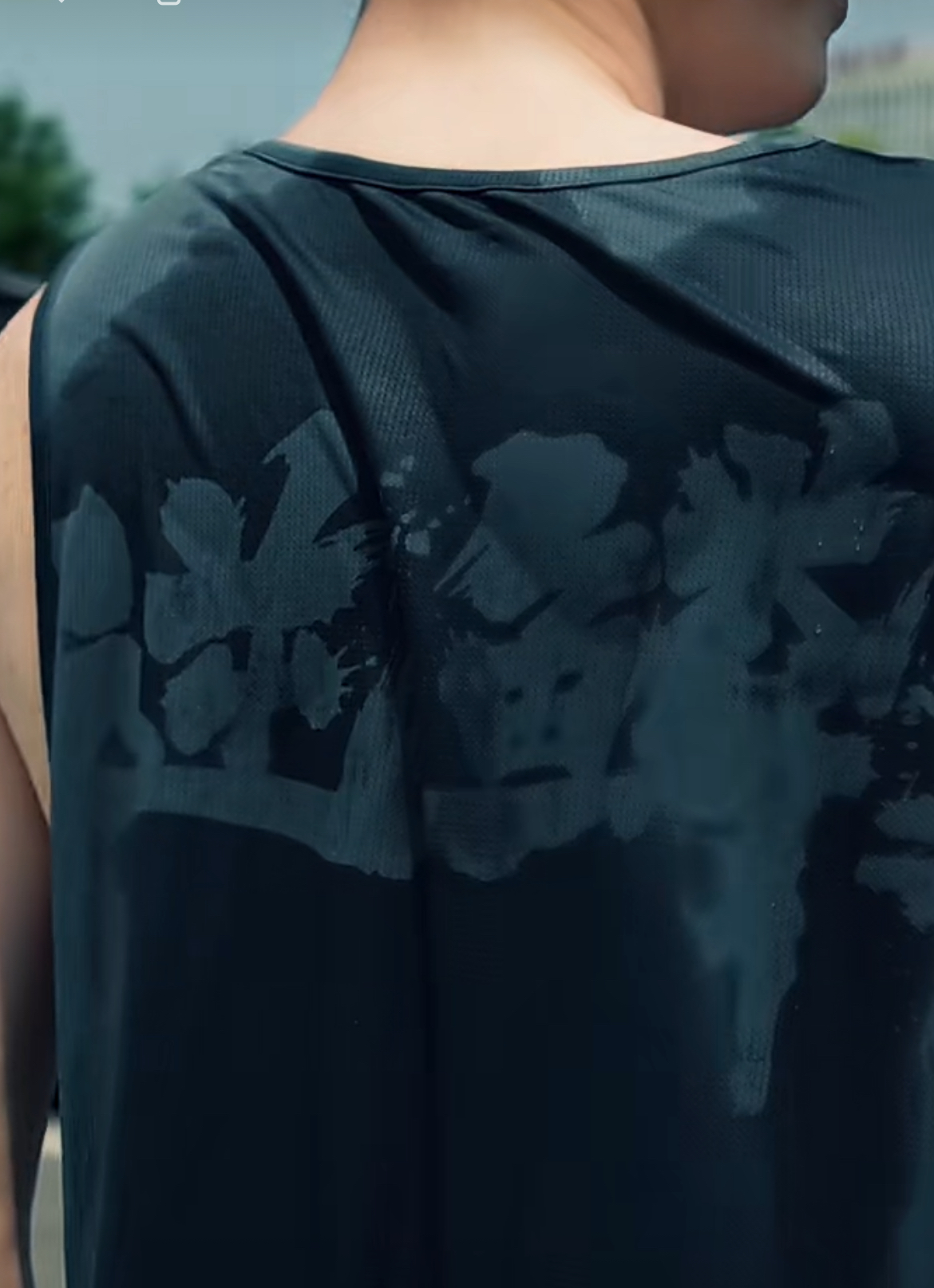 这是张敏给球服做的特殊设计——遇水就能显字,也是他20多年篮球事业的缩影。