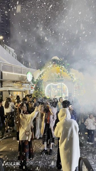「武昌万象城」用灯光打造北欧极光秀,配合飘雪,浪漫氛围拉满。跨年夜还将举办千禧disco派对,5支乐队,2米巨型Disco球,6小时不停歇带大家重返2000年,在冷焰火流星雨中倒数跨年。