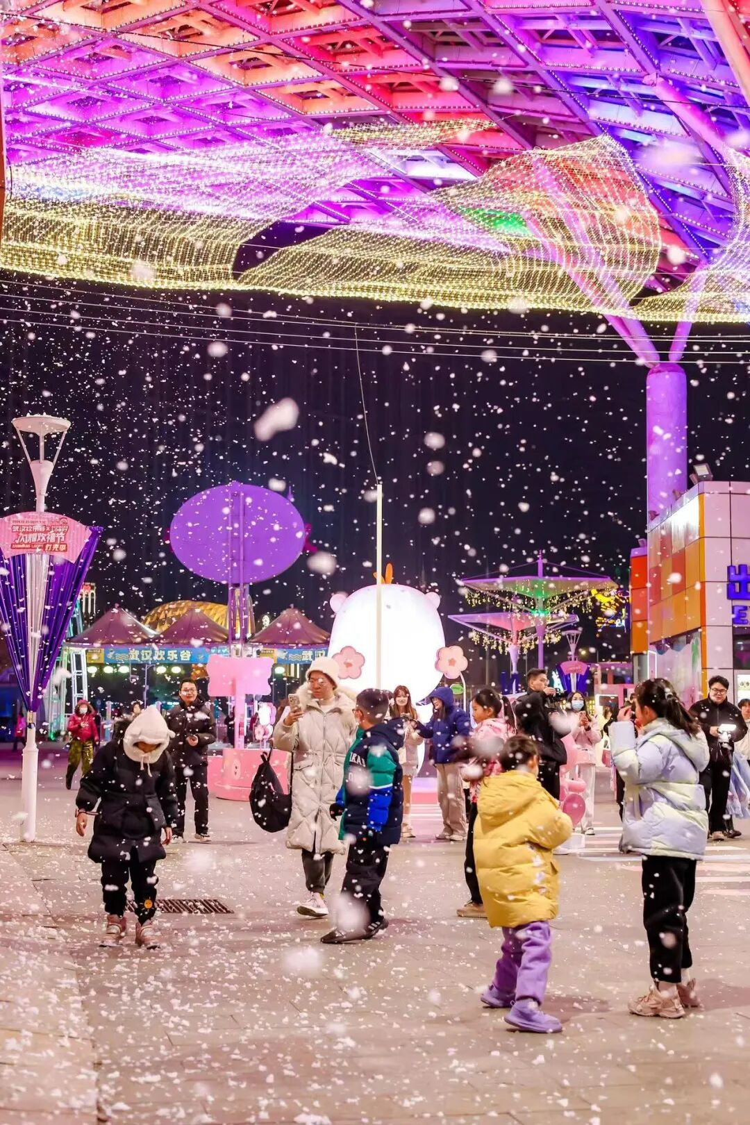 「武汉欢乐谷」开启夜场,正在举办闪耀欢禧节赞萌露比灯光季。园区变成35万方粉萌乐园,晚上不定时飘雪,超浪漫,美丽机位多到根本拍不完。