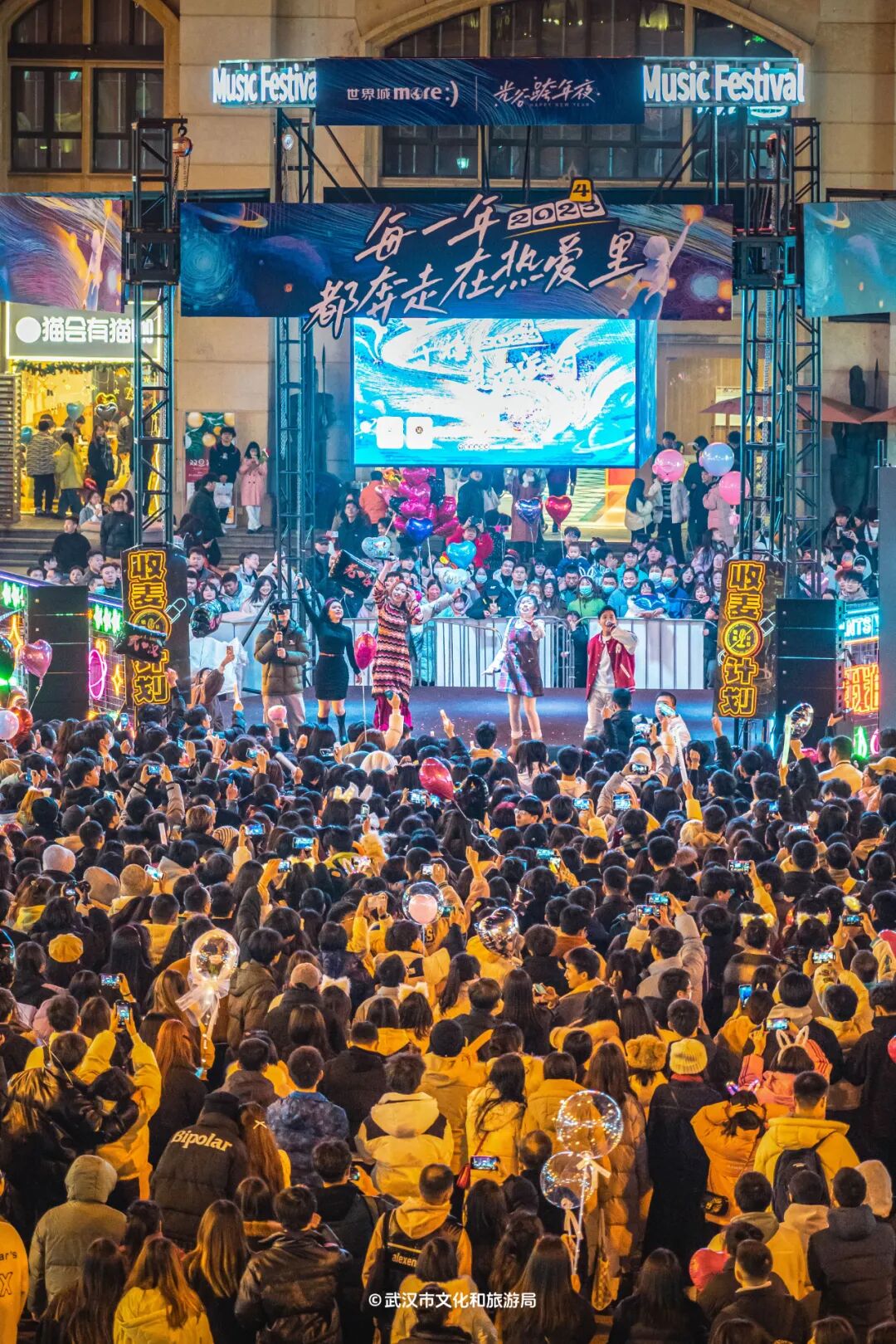 跨年夜,也是各大商圈的整活大赛。「民众乐园」即将开启“汉口夜不眠”跨年派对,打造室内外双舞台,供应音乐美食美酒。
