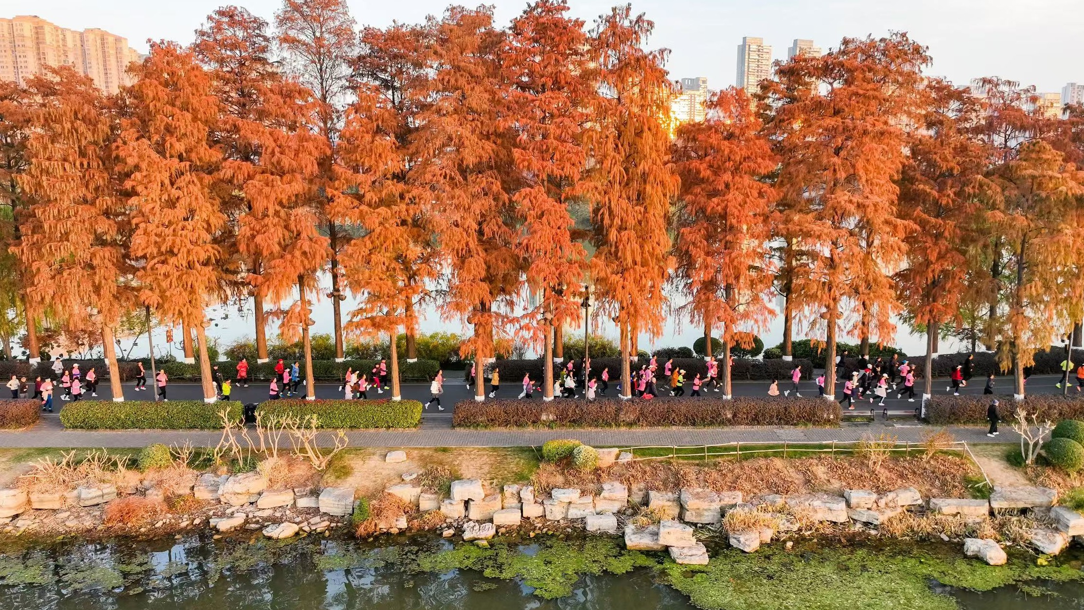 2025年1月1日上午7时,从东湖绿道楚风园出发,沿着湖中道、湖山道奔跑至东湖风景区水上派出所折返,抵达楚风园终点,全长20.25公里的赛程,不仅是体育的竞技,也是感官的享受。奔跑在东湖绿道上,赛道沿线的风景伴随着脚步不停变换,吹着新年的湖风,沿路杉树已由青变红,湖面上,红嘴鸥追逐着东湖游船,生机盎然。