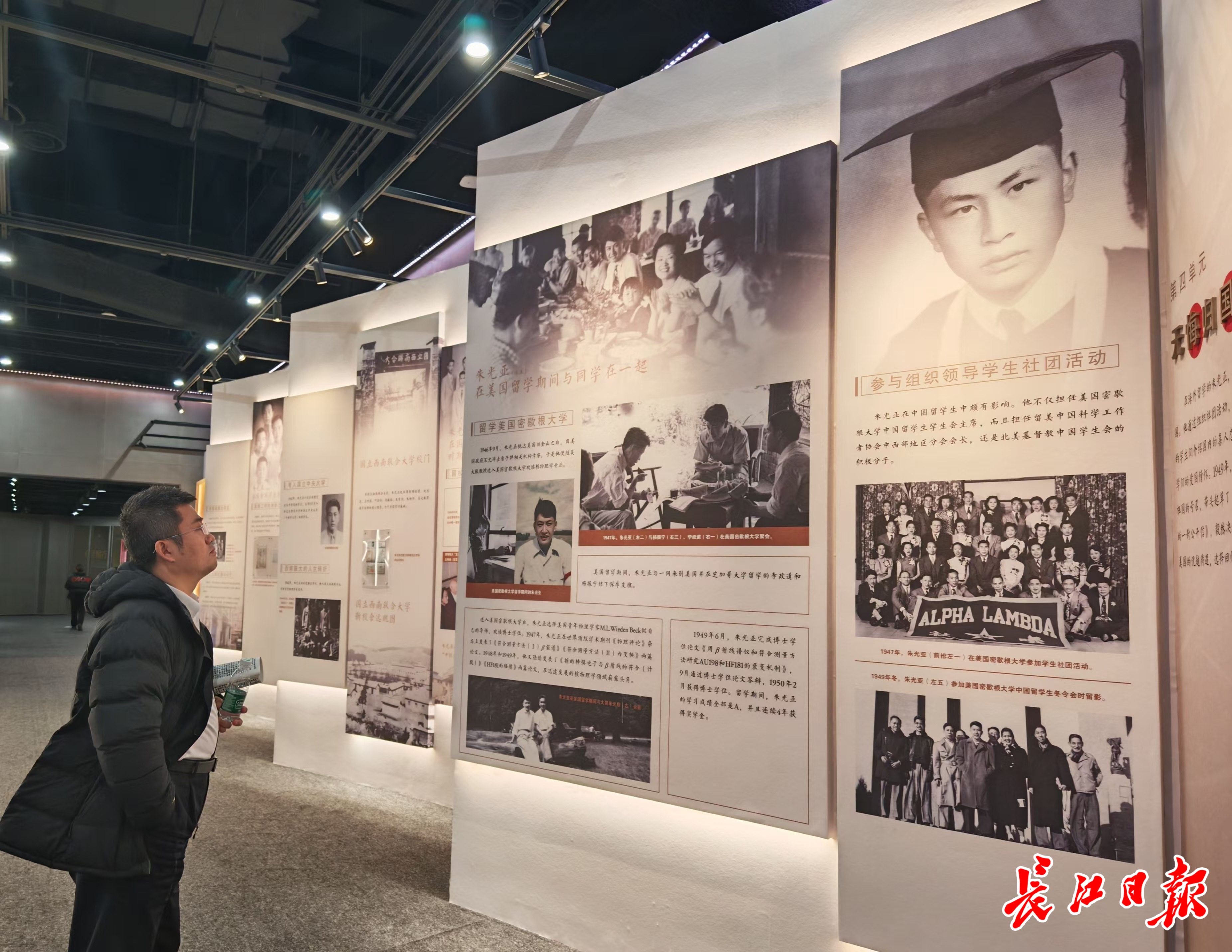 朱光亚的求学经历吸引观众驻足观看。记者柯立摄