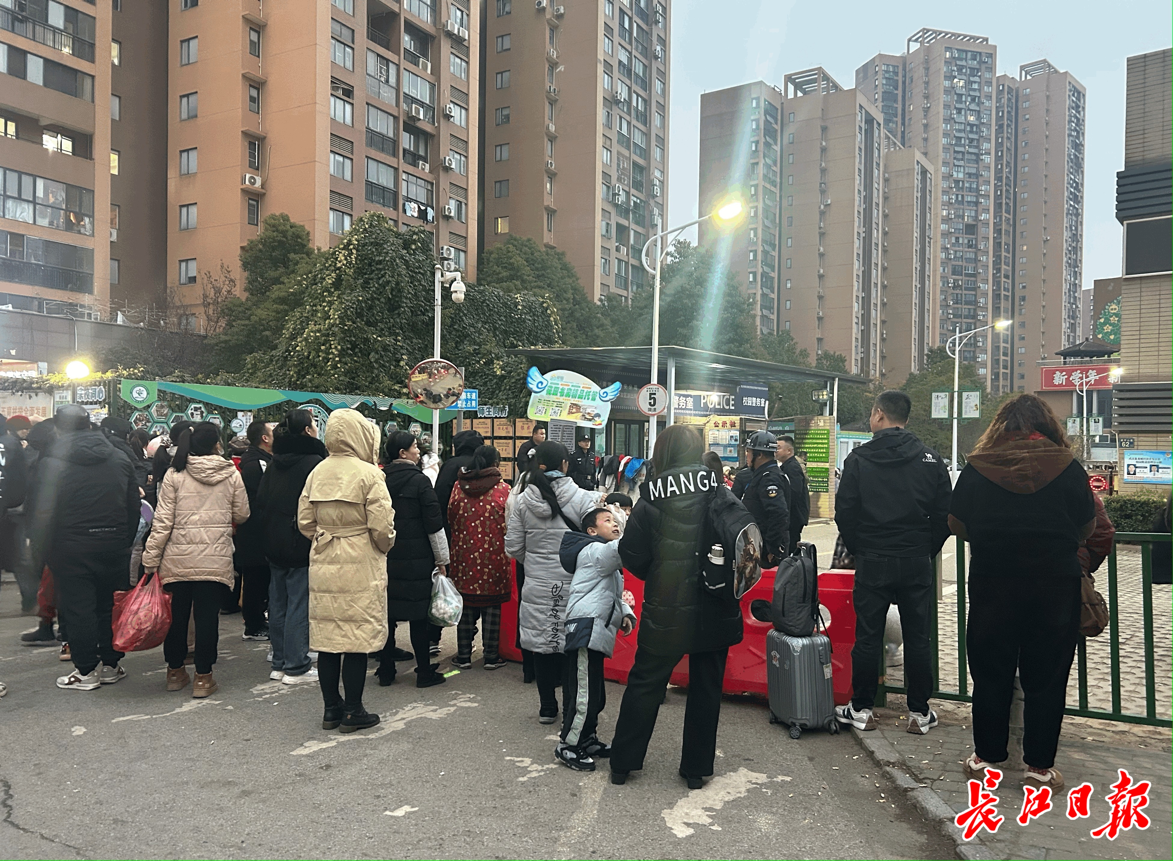 放学时间,武汉某小学校门口,大批家长正在等待接娃。记者樊友寒摄