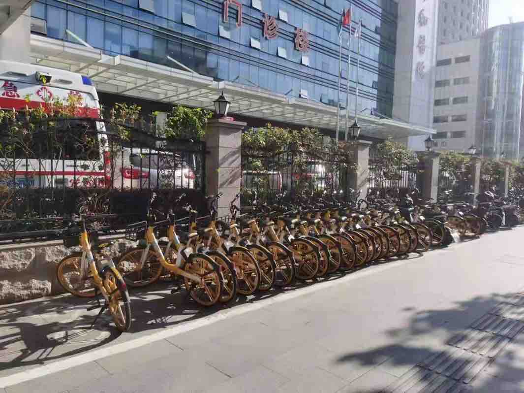 协和医院门口共享单车摆放整齐。通讯员张蕊 供图