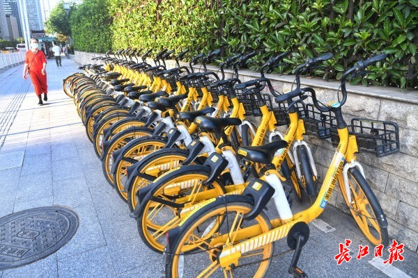 6月6日,武昌和平大道积玉桥街头,共享单车整齐停靠在路边。 长江日报记者 苗剑 摄