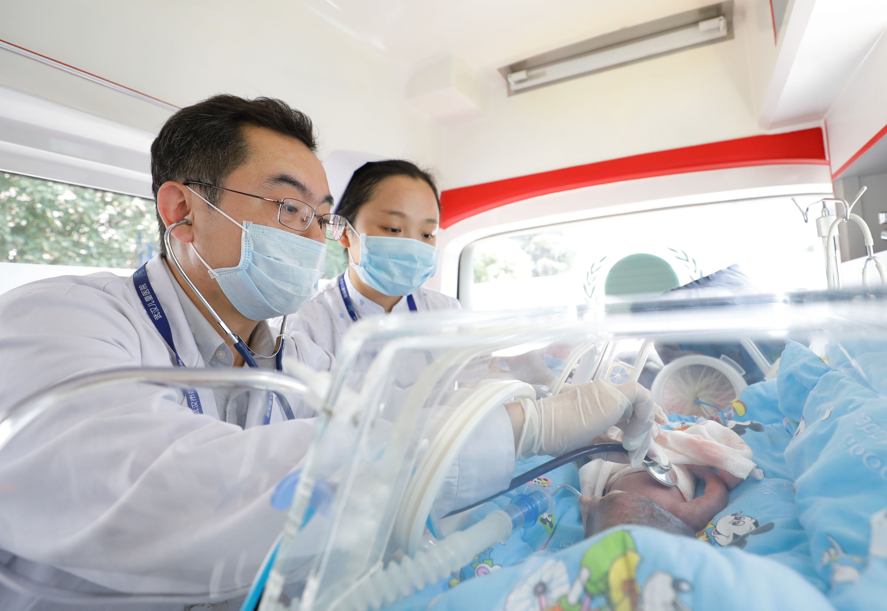 武汉儿童医院转运中心医护人员将外地患儿接来武汉救治。