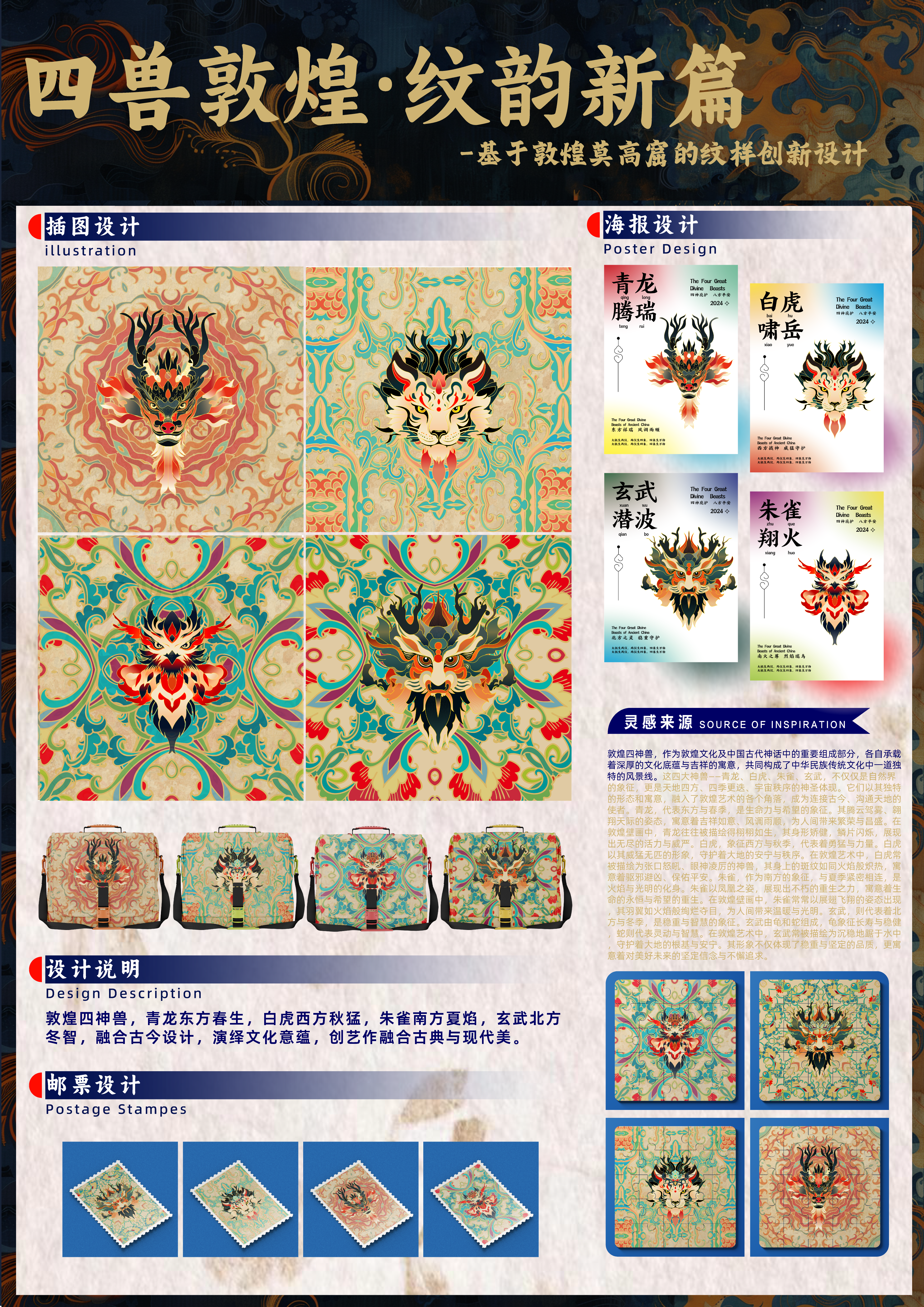 学生设计的《四兽敦煌·文韵新篇》纹样。
