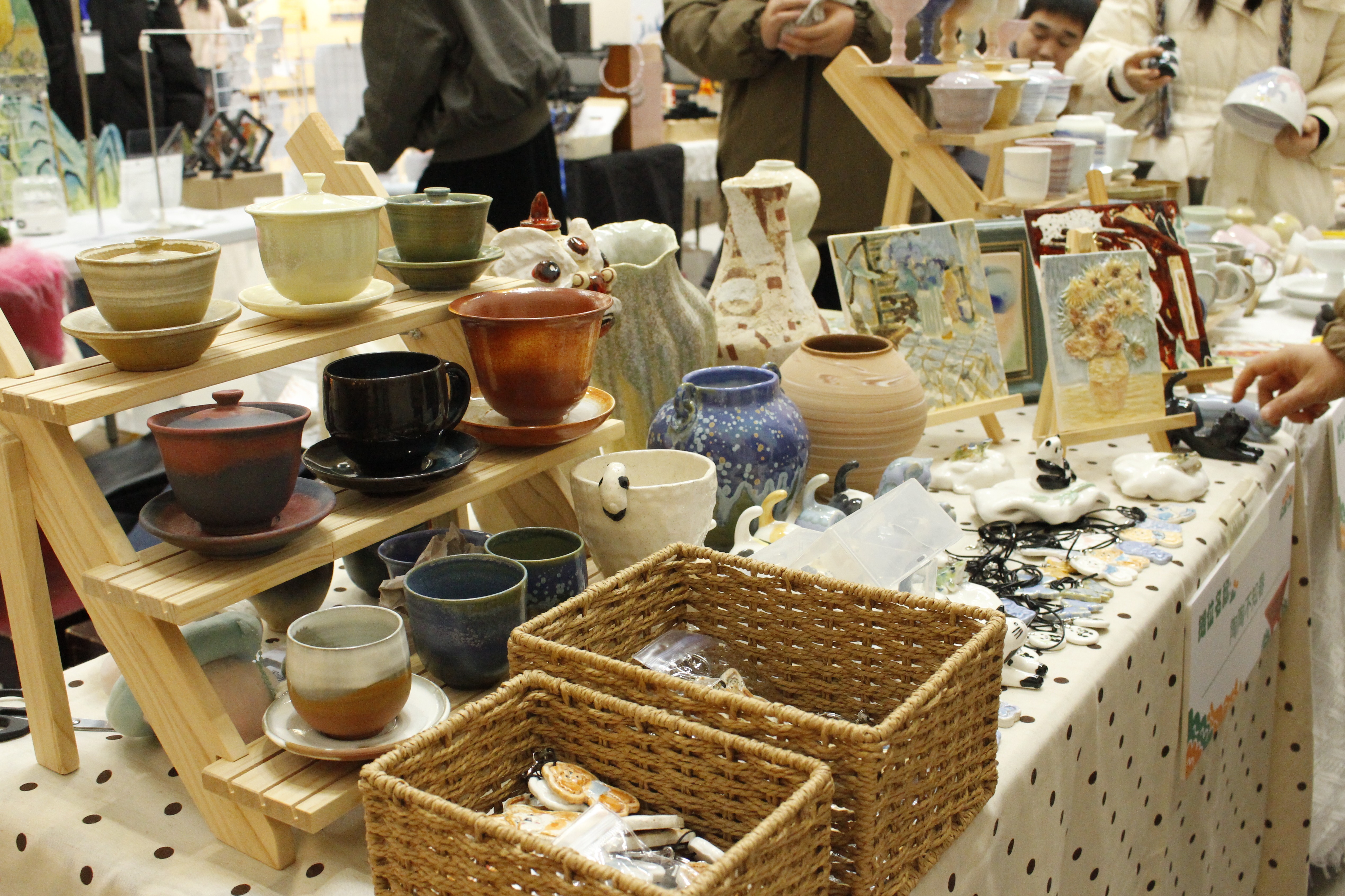 学生们自制的陶瓷工艺作品受欢迎。黄莞娟 摄