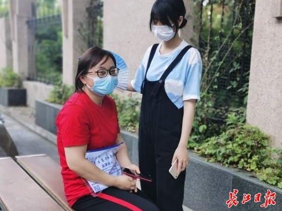 长江日报记者在武汉一中、武汉十一中等多个考点外看到,不少早到的学生正在抓紧时间看书。7时30分左右,武汉市第十一中考点外陆续迎来不少考生,等待入场的同时静静地复习。一大早阳光灿烂,记者在市二十九中考点外看到,一名候考的女生,心疼送考的妈妈,一边复习看书一边细心地给妈妈扇扇子。