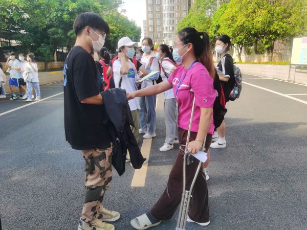 一个月前,郑方明不小心摔了一跤,导致左脚脚踝骨折。正值高考冲刺期,身为班主任的她在受伤到医院处理后,当天便回到讲台,每天从早上6点半坚持工作到晚上10点,孩子们离开后她才走。“我是班主任,陪伴了孩子们三年,在这个节骨眼,我必须陪在他们身边。”郑方明说,看到她拄着拐杖还坚守在学校,学生们很懂事,看她上楼梯会主动上前帮着拿东西,一进教室就有学生端着凳子过来让她坐下。