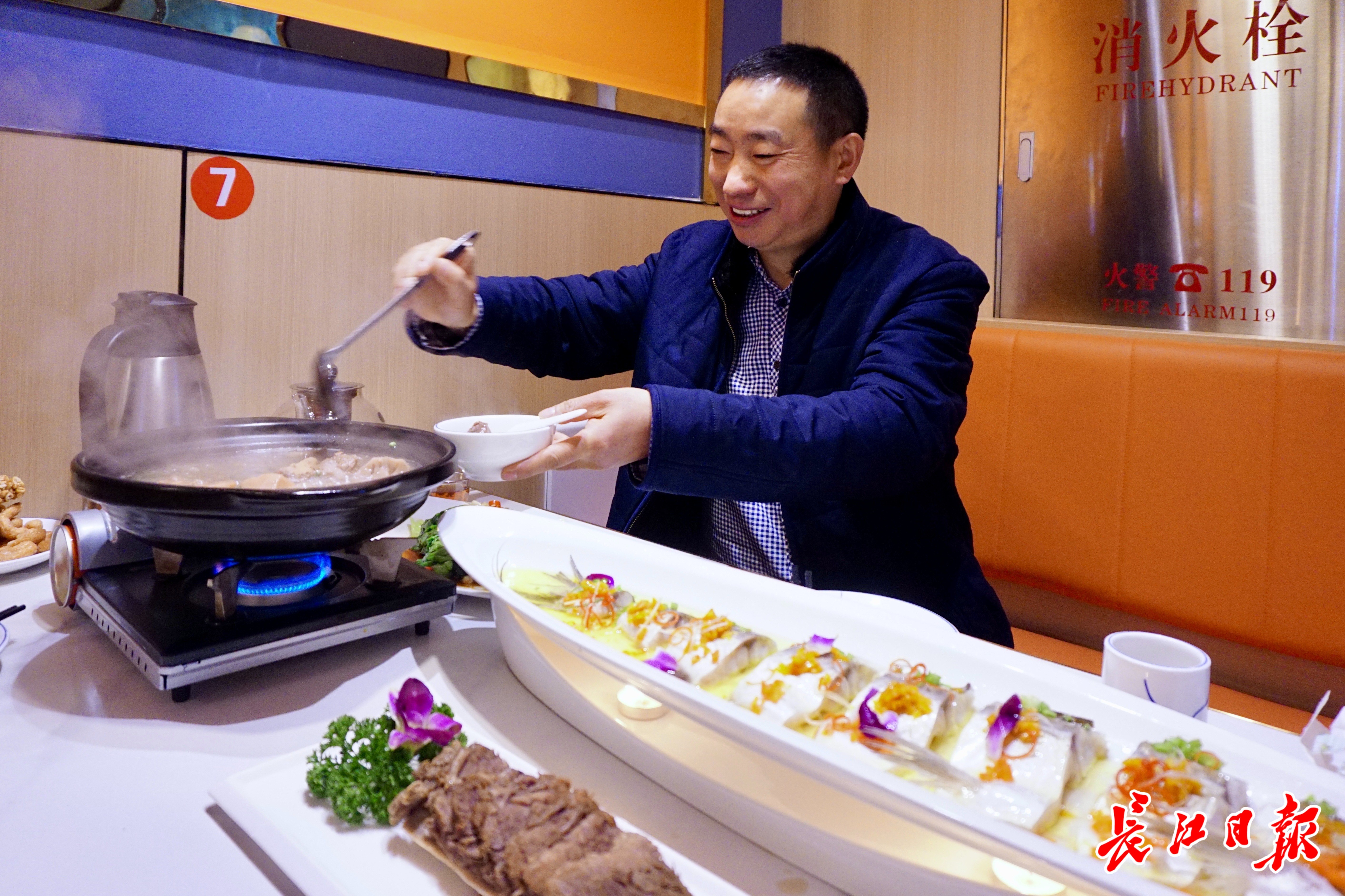 所以,我们的厨师各种菜系都要懂一些。游客点菜时,我们先问问游客从哪里来、爱吃什么口味,再让厨师在湖北菜的基础上微调一下口感。比如,同样是红烧武昌鱼,湖南人和四川人都爱吃辣的,但湖南口味不爱勾芡,四川口味就喜欢稍微麻一点。做一点点调整,就能让游客吃得满意。