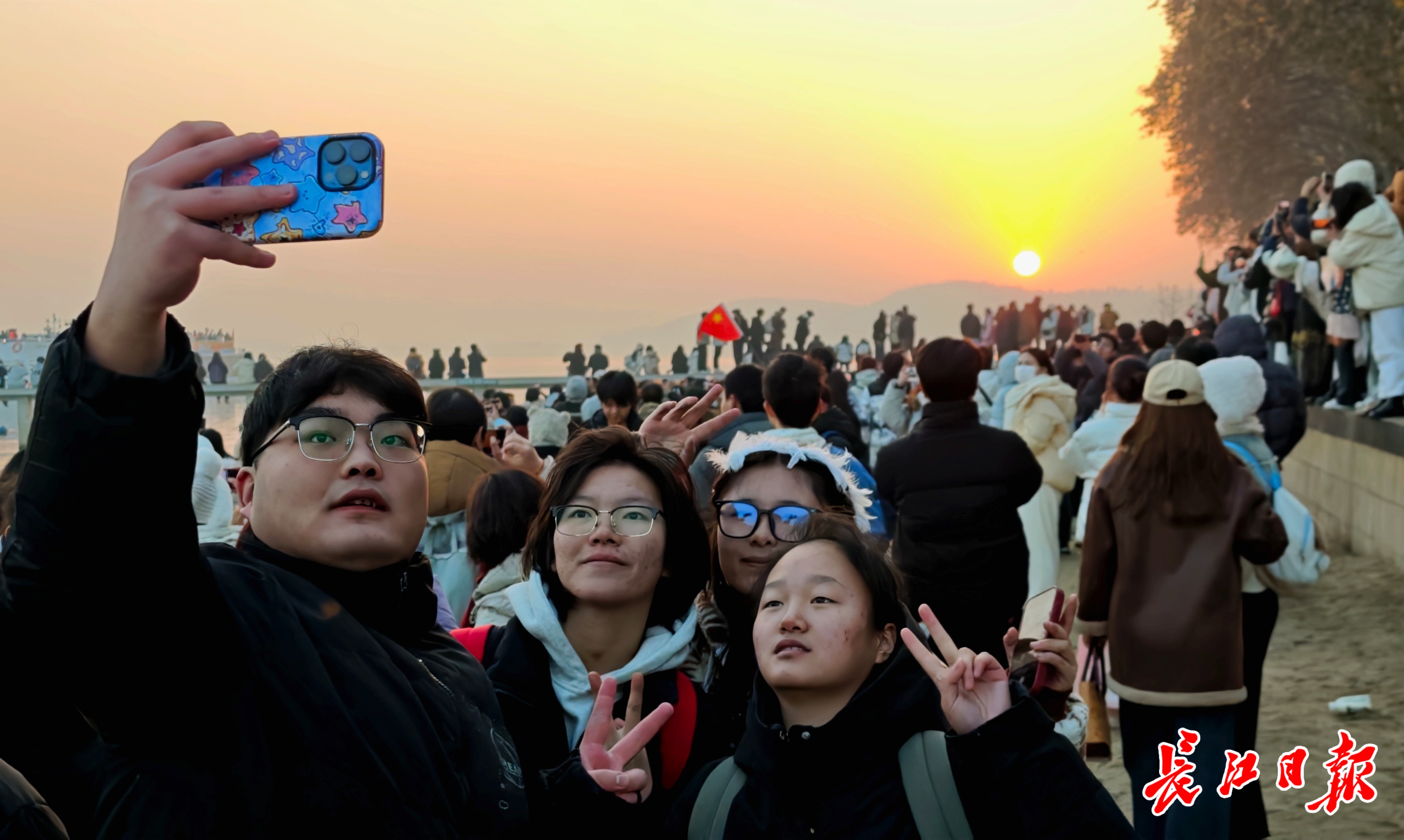 日出时分,游客们纷纷举起手机,记录下新年第一缕阳光。 长江日报记者何晓刚 摄