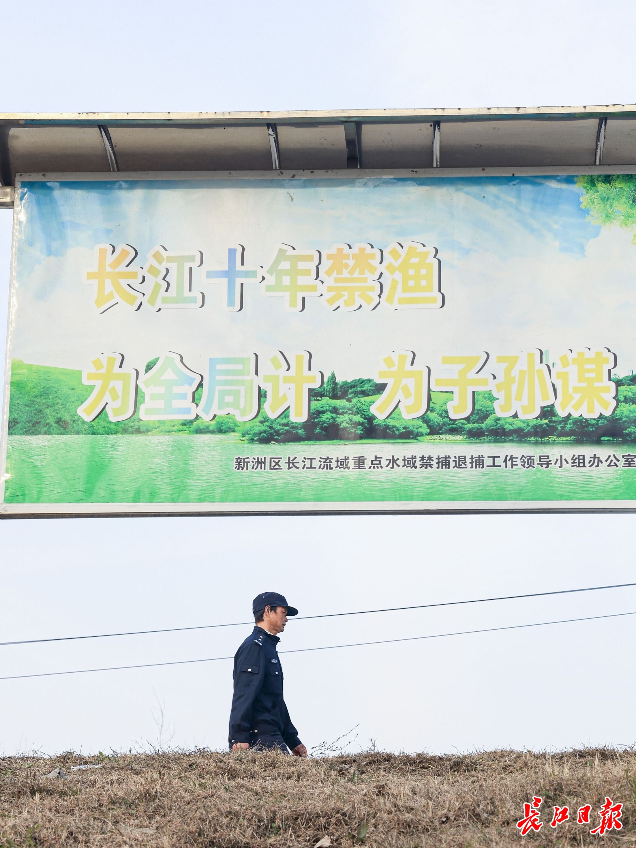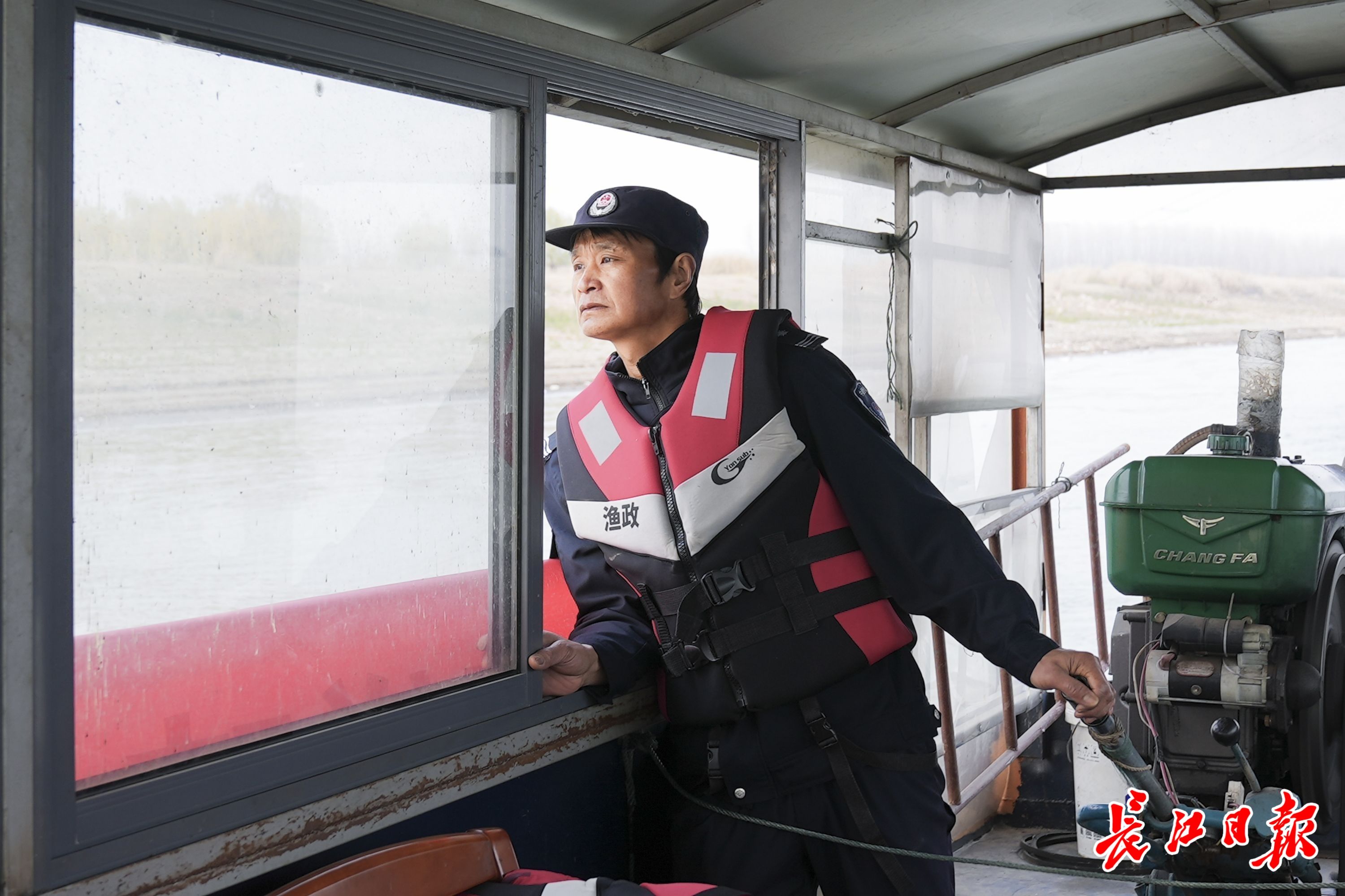 2021年1月1日,长江“十年禁渔”全面启动。打鱼20多年的渔民张锦退捕上岸,成了渔政巡护员。