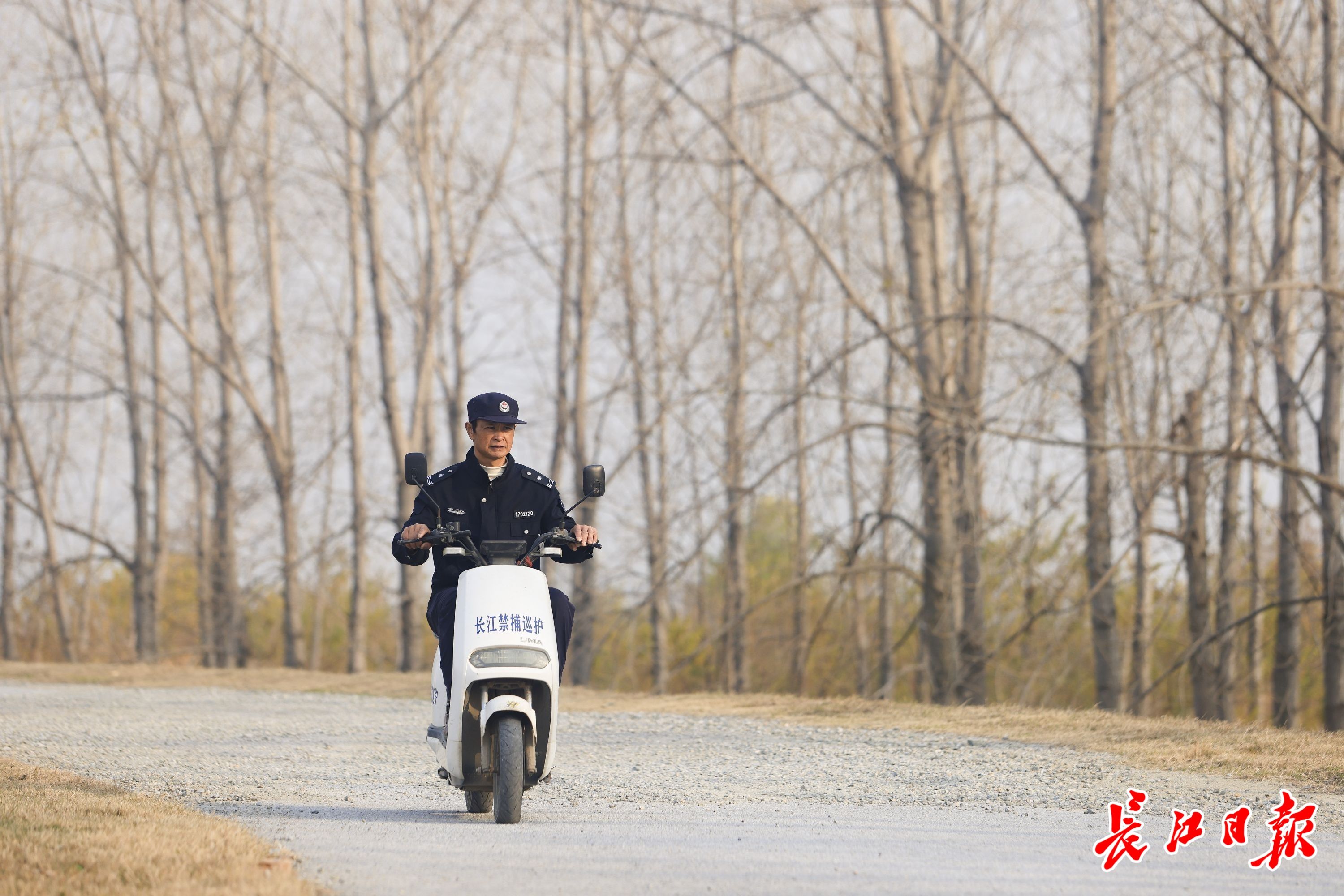 张锦骑着电动车在江堤上巡查。长江日报记者 胡冬冬 摄