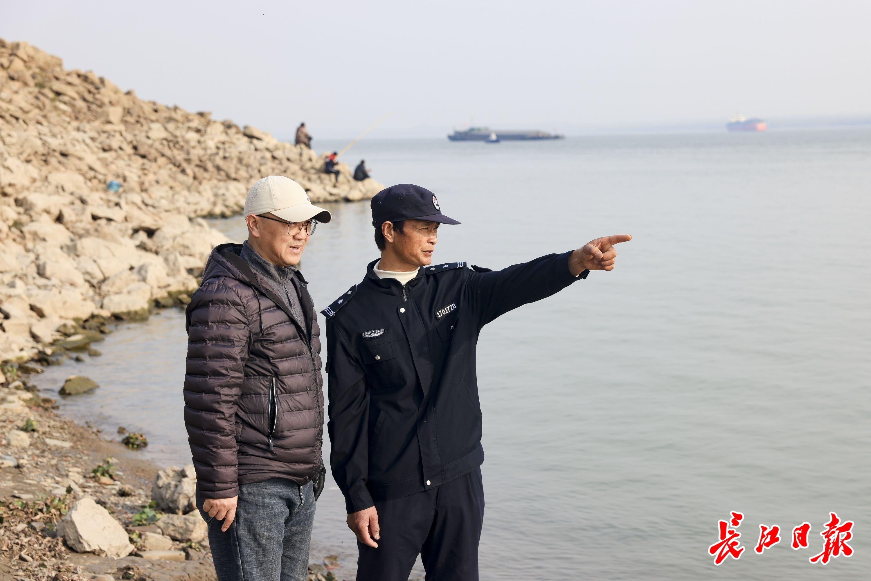 张锦来到江边巡查,叮嘱钓鱼人不要违规违法。长江日报记者 胡冬冬 摄