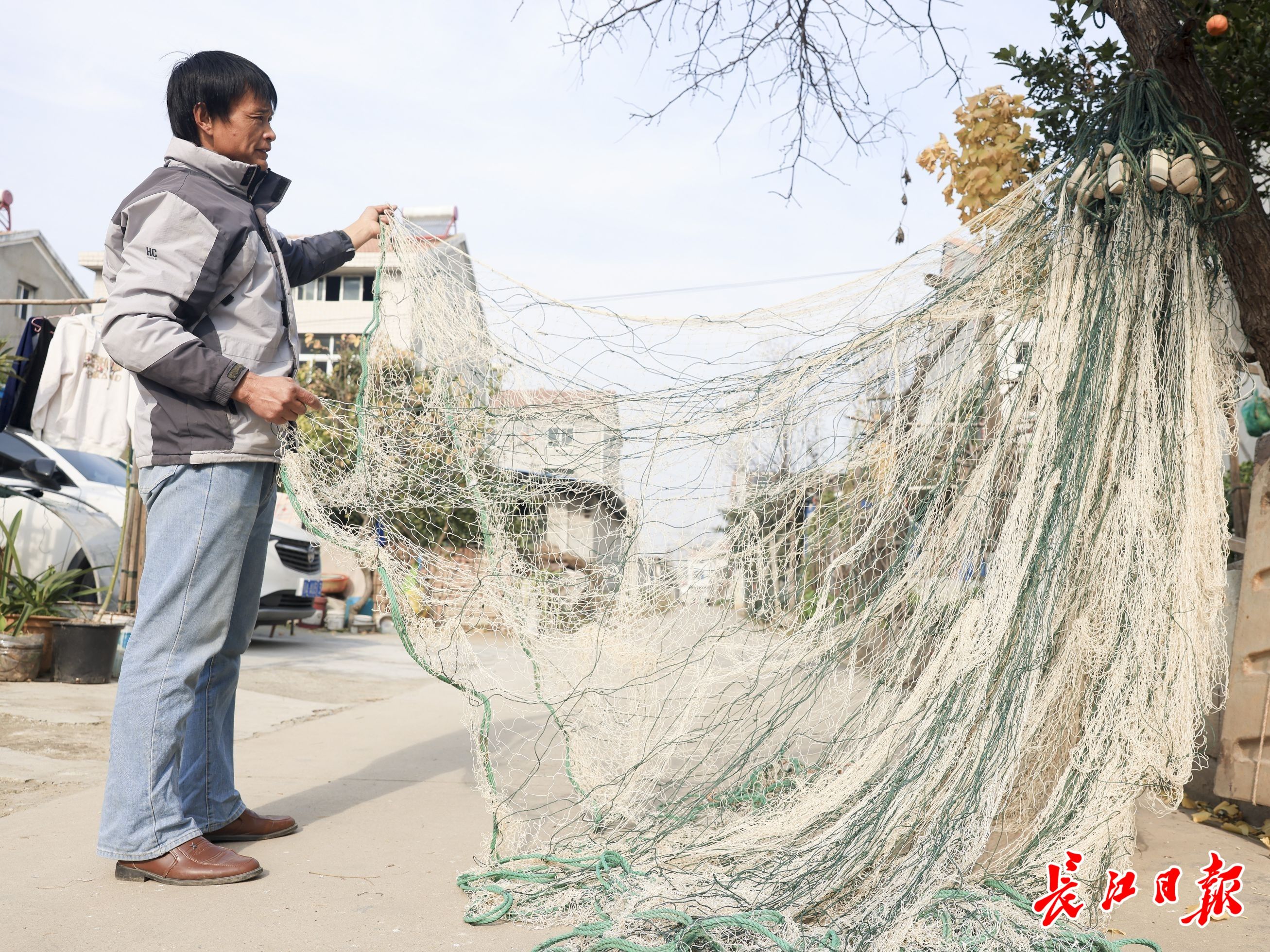 “网不结实,就容易破网跑鱼。”相比织网,张锦更喜欢打鱼。一条“流网”几百米长,顺着上游下网,一直往下游漂,就可以打到大鱼。