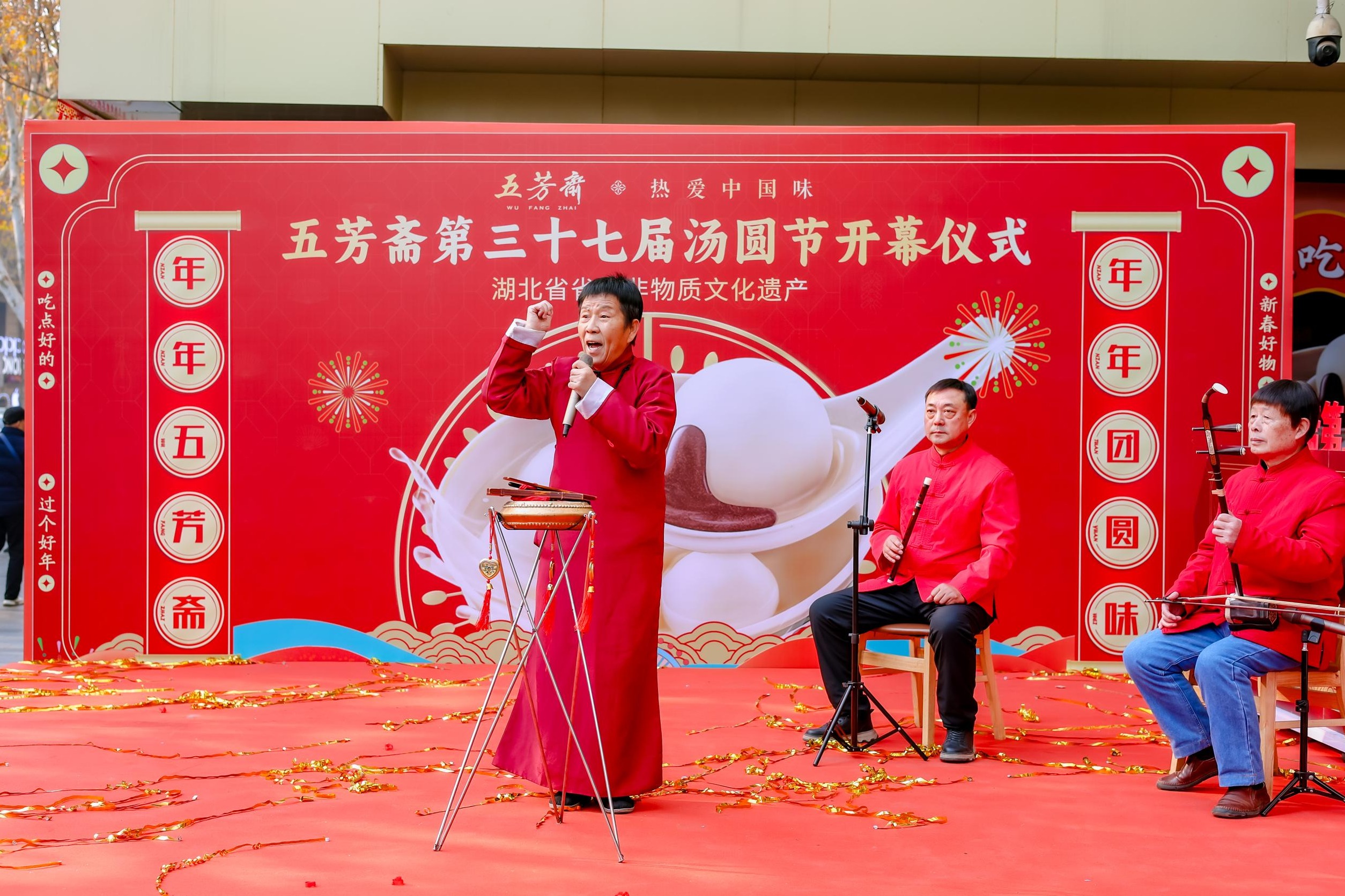 1月3日上午,五芳斋总店门前锣鼓喧天,第37届汤圆节正式拉开序幕。开幕式现场,五芳斋汤圆制作技艺、湖北大鼓等非遗技艺同台亮相,带来视听盛宴。武汉五芳斋汤圆技艺非遗传承人李杰现场演示叠式汤圆的制作过程,技艺娴熟却不失艺术感;湖北大鼓的幽默诙谐、抑扬顿挫让掌声、笑声此起彼伏,充分展现了中华文化的多样性和包容性。