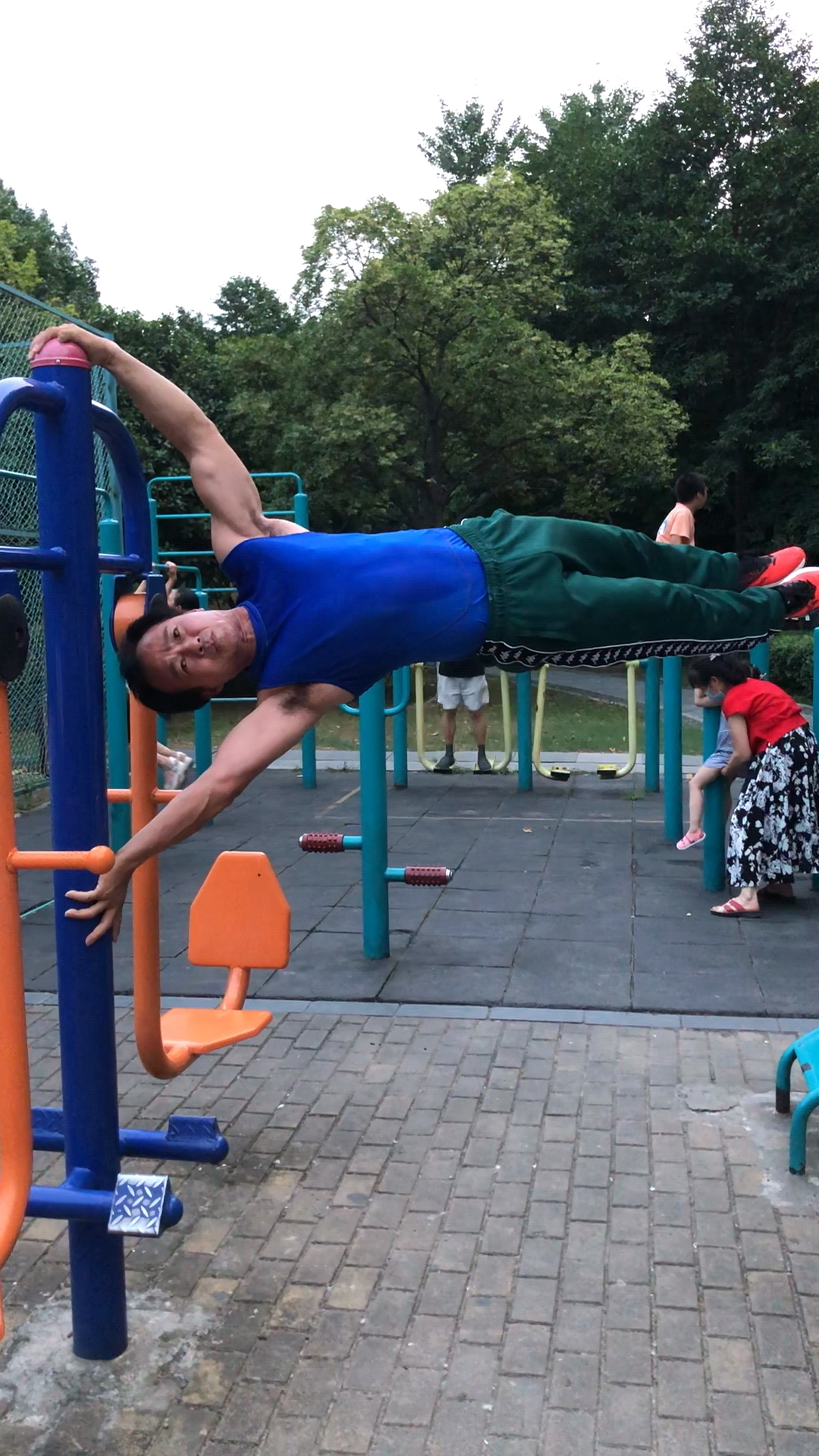 这是我每天的日常:清晨四点半来到市场,一直忙碌至中午。下午,妻子接替我守店铺,我就会去江边的公园锻炼。春夏两季,生意相对清淡,我就会在早晨去健身,到了秋冬,时间就会调整为下午。每天只要能在杠子上挂挂,我就觉得身体很舒畅。