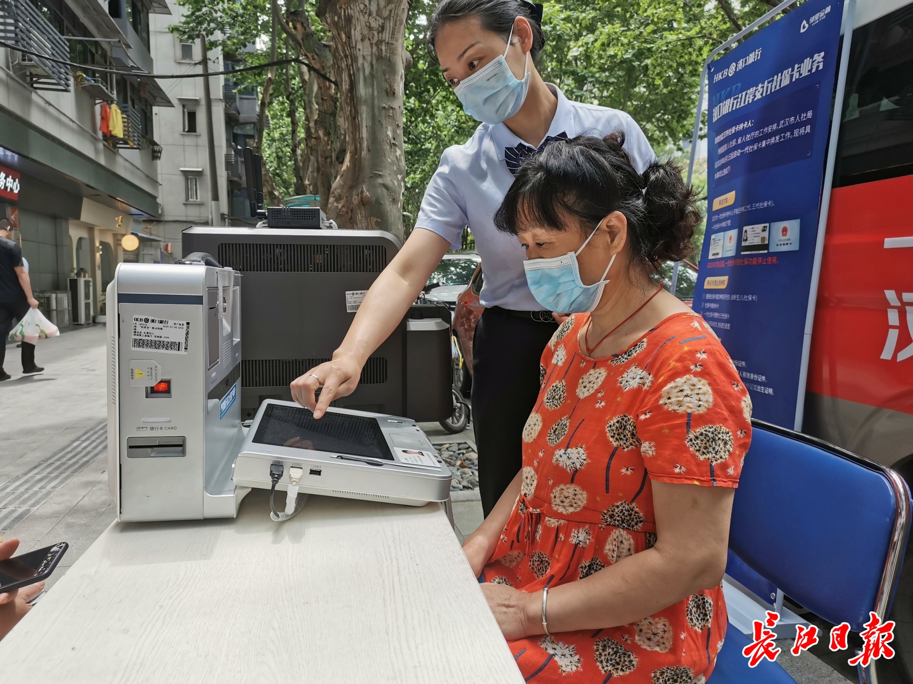 工作人员为社区居民现场办理社保卡换新业务。长江日报记者吴曈 摄