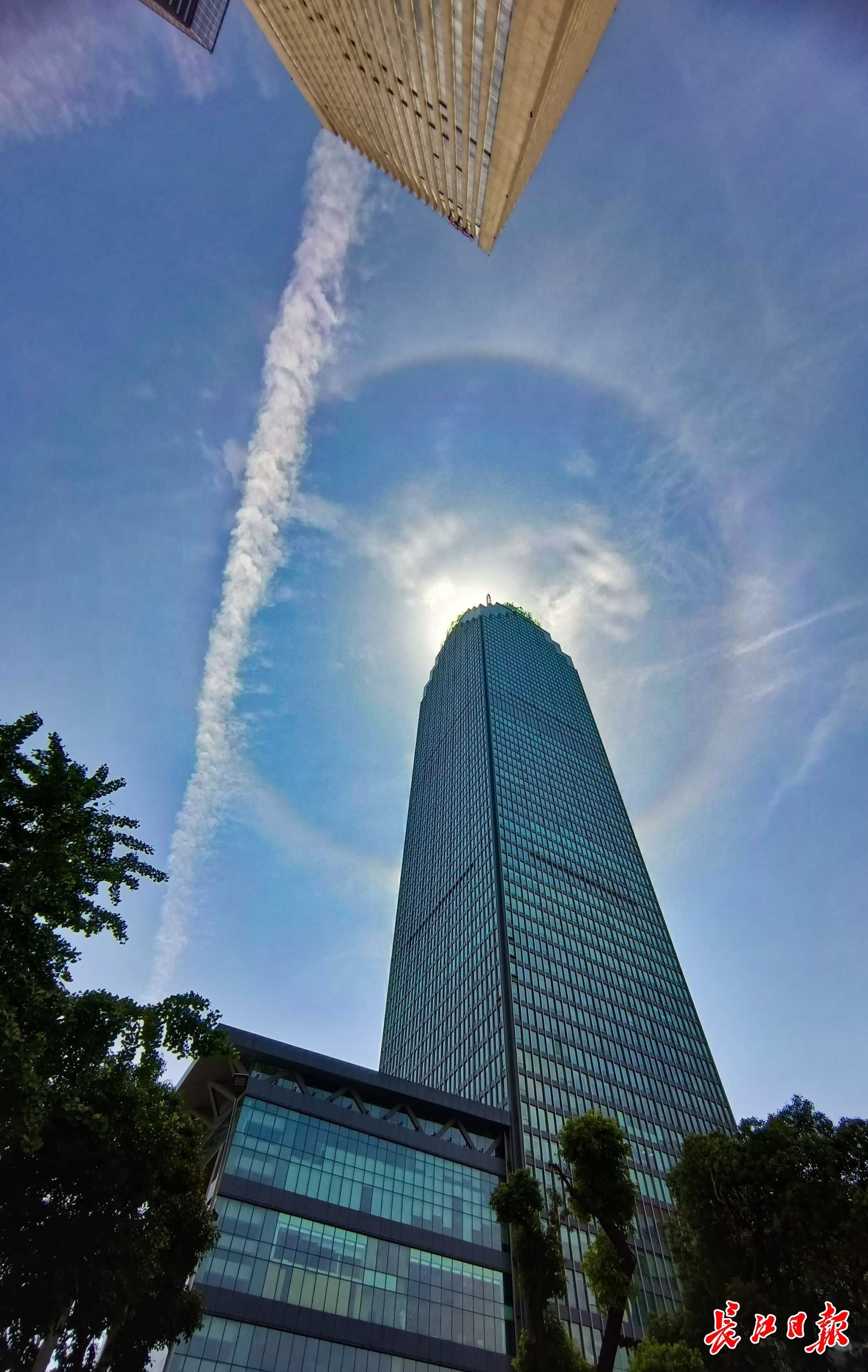 上午10时许,天空正中围绕太阳出现了一个巨大的日晕,五彩的圆环几乎占据了头顶大半个天空。详见>>