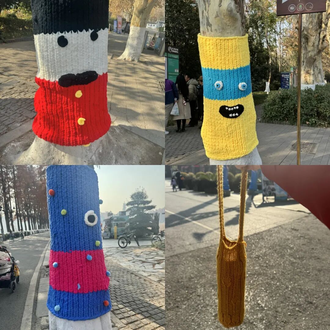 近日,我们漫步至东湖楚风园停车场出口,一抹奇趣映入眼帘——三棵树披上了五彩斑斓的“毛衣”。粗毛线编织的纹理间,跳跃的色彩相互碰撞,萌动的眼睛、俏皮的牙齿,处处散发着可爱与搞怪,构成了一幅生动的街头艺术画卷。这些独特装饰,宛如冬日暖阳,既为东湖添了一抹亮色,又晕染出丝丝温情,让人不禁想起奶奶手织的水杯带的温暖。东湖之美,于细微处动人,于温情中入心。