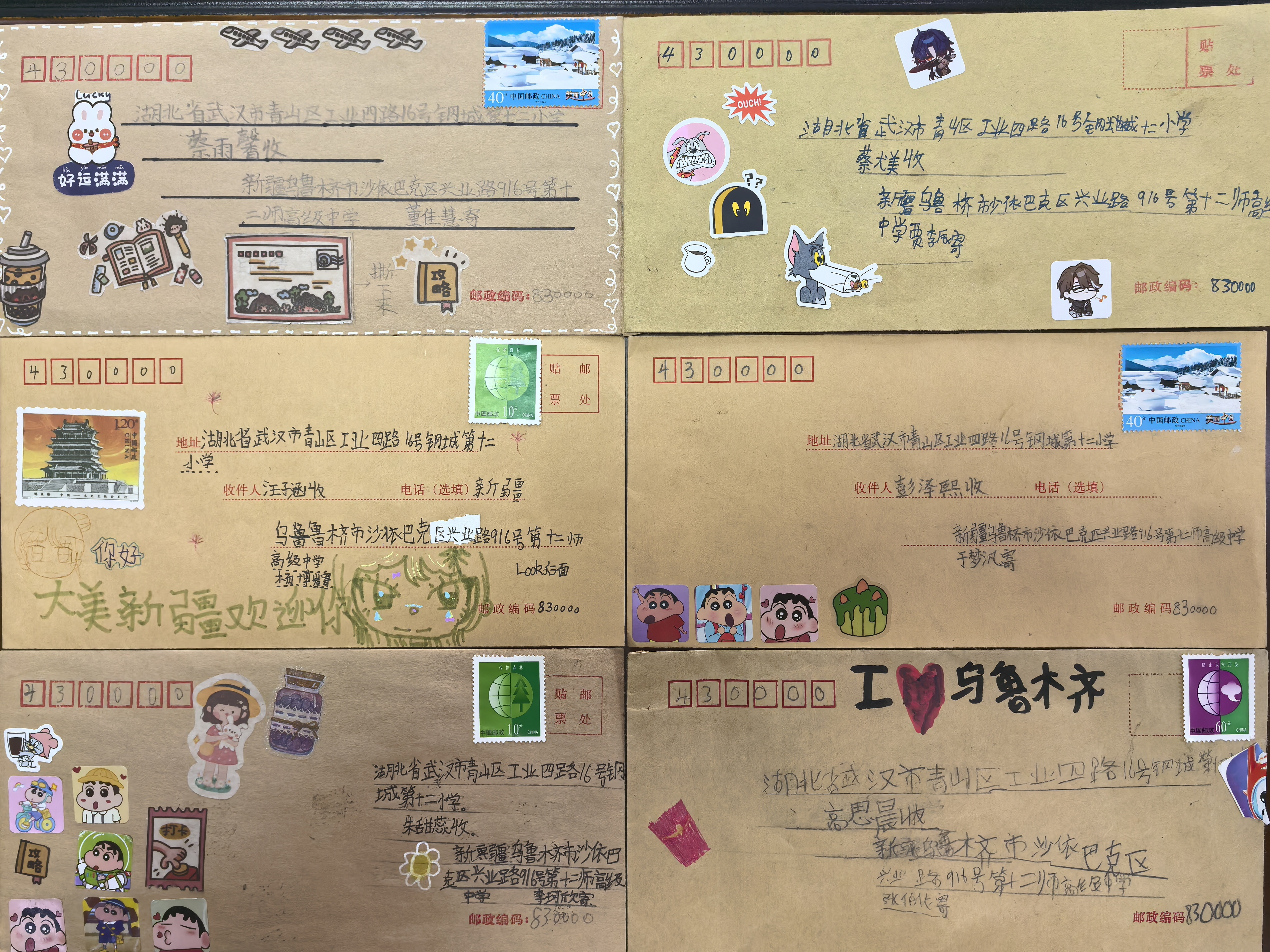 最近,在青山区钢城第十二小学403班,课间总能看见有学生捧着一封信在仔细阅读,他们偶尔还和周围的人窃窃私语,交流自己想象的旅行计划。有的信因被翻看了太多次,信封封口都破了。据了解,这些引人欢心的信来自3000多公里外的新疆乌鲁木齐。