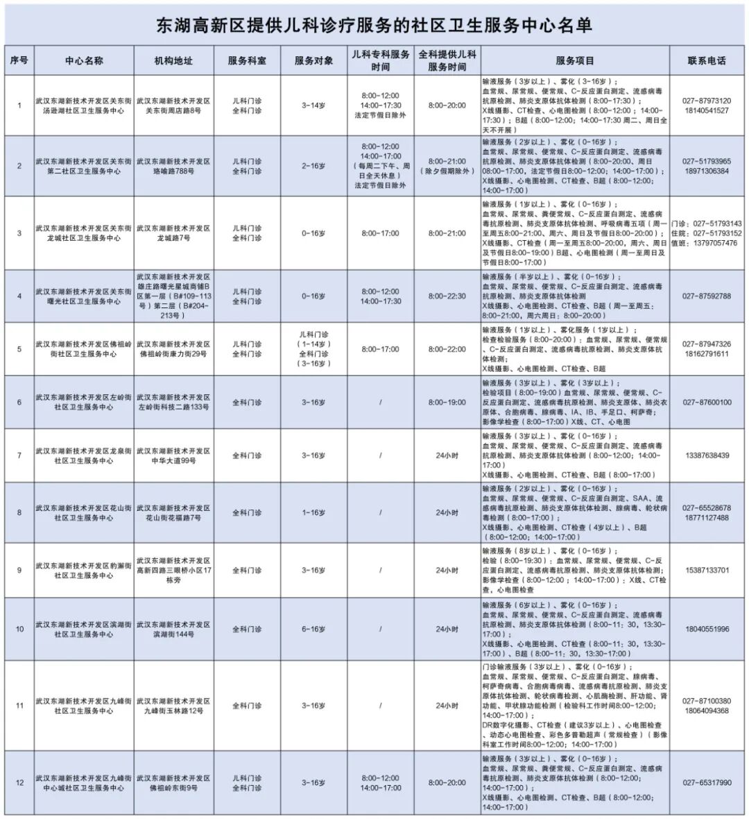 冬季流感多发,为更好满足辖区儿童就医需求,方便居民就近就诊,东湖高新区4家三级医院、12家社区卫生服务中心可提供儿科诊疗服务。⬇️⬇️⬇️