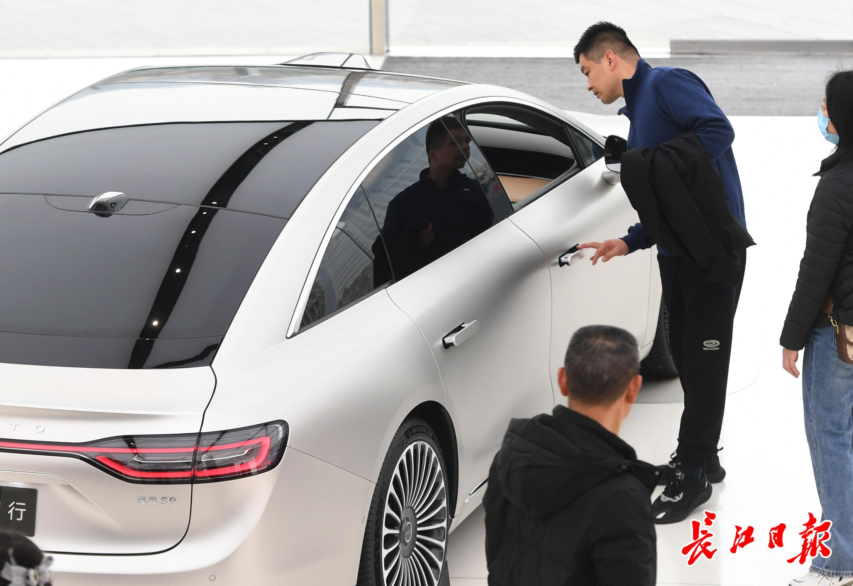 1月4日,随着汽车“以旧换新”政策的深入实施,越来越多消费者开始关注并购买新能源汽车,1月4日,记者走访光谷商圈和武商梦时代广场多家新能源车直营店发现,借力消费品“以旧换新”政策,看车咨询的人多起来,销售人员正热情地向消费者介绍新能源汽车绿色环保和经济实惠等优势。