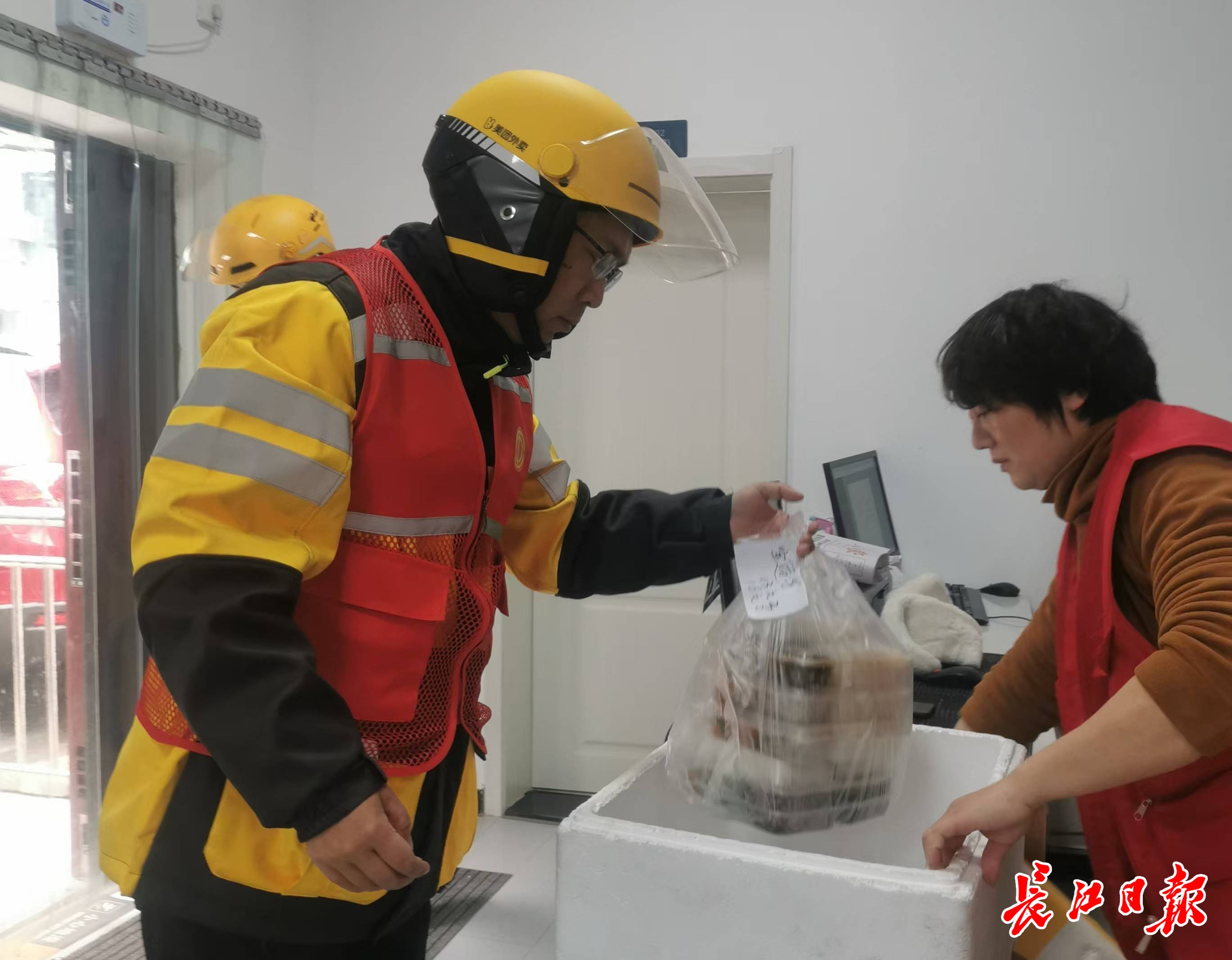 党员小分队的外卖小哥陈肖将订餐送到社区居家养老服务中心。长江日报记者刘睿彻 摄
