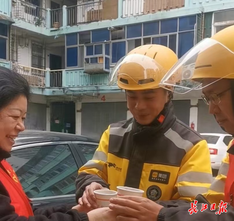 社区也为外卖小哥们送来了暖暖的腊八粥。长江日报记者刘睿彻 摄