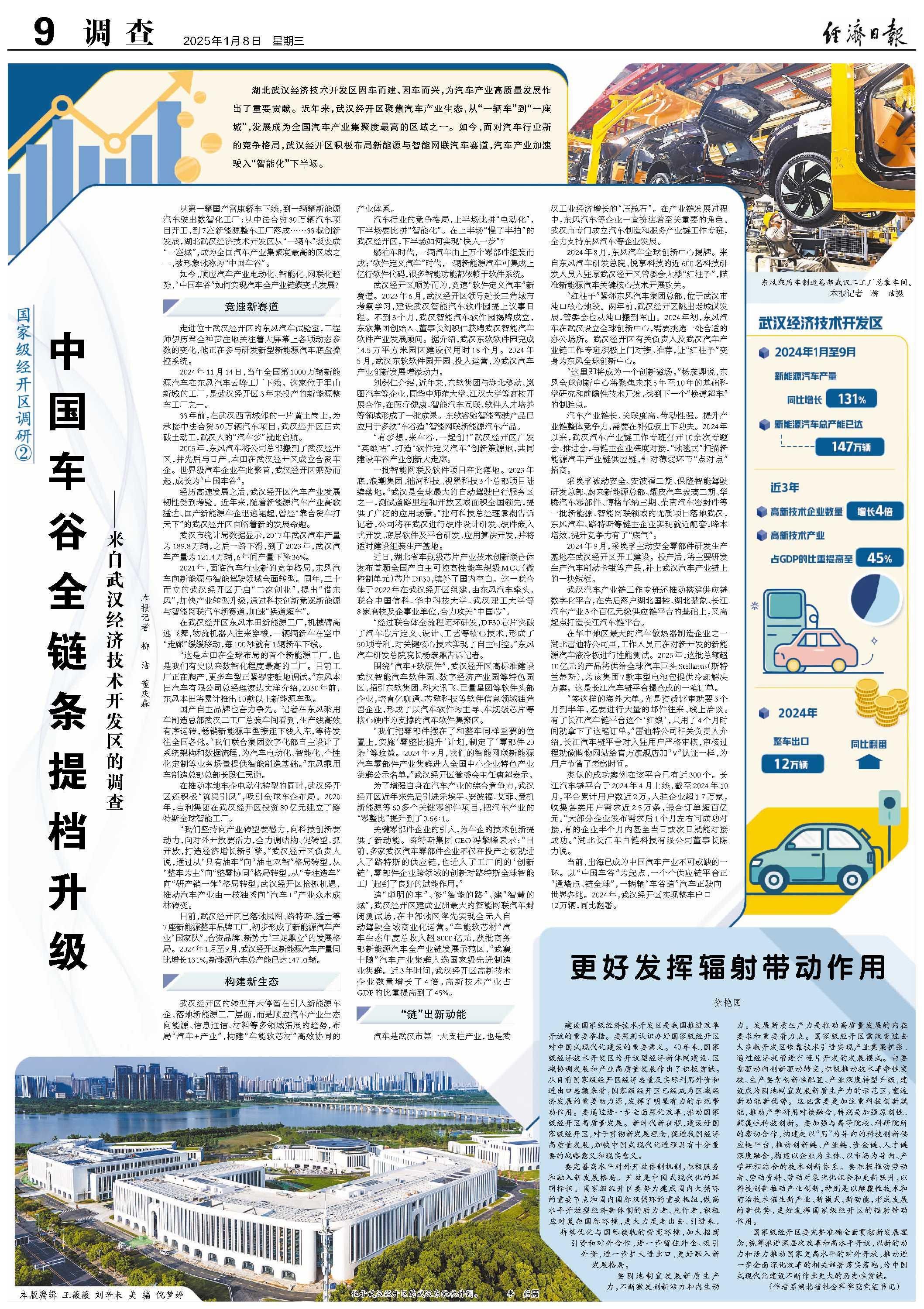 1月8日,经济日报刊文《中国车谷全链条提档升级——来自武汉经济技术开发区的调查》,关注武汉经开区积极布局新能源与智能网联汽车赛道,实现汽车全产业链蝶变式发展。