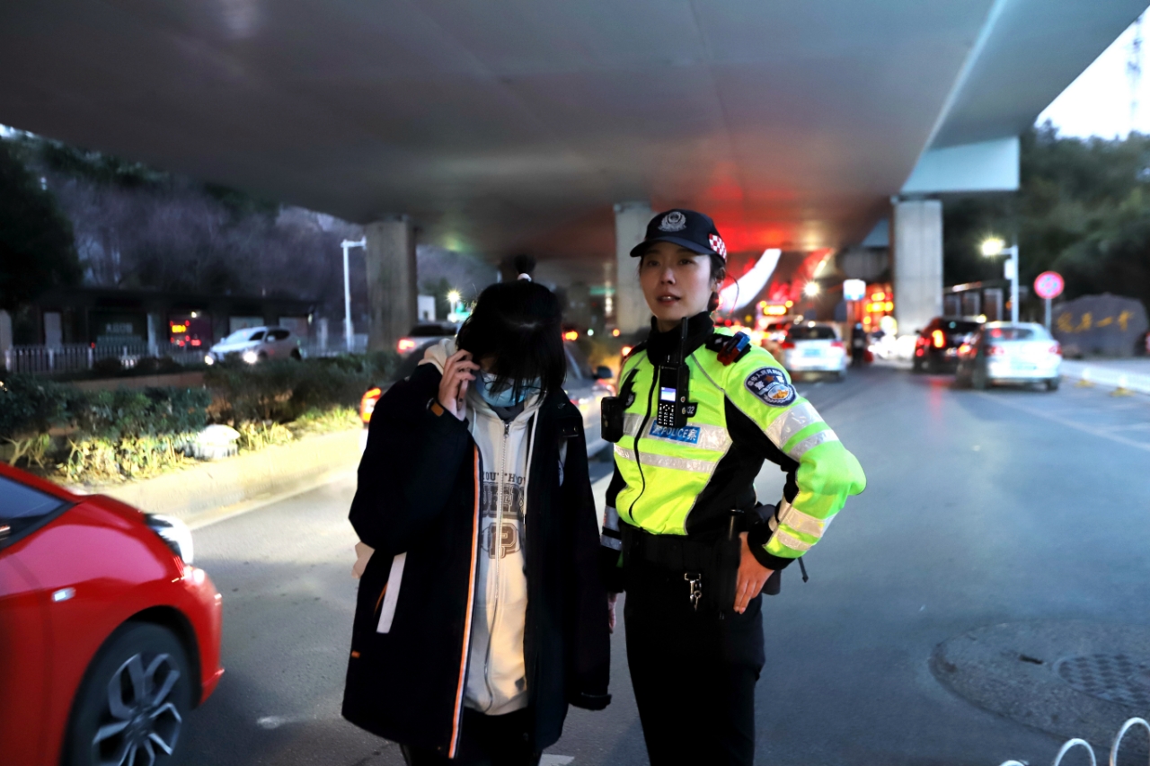 2月6日,又一轮暴雪来袭,路面愈发滑溜。李轶和战友值守在雄楚高架五角塘段,这个上坡路段是事故多发地带。当天清晨,她正在疏导交通时,突然听到一声尖叫:“快来救救我!我的车控制不住了!”一辆红色轿车在冰雪中失控,眼看就要撞向后方的车辆。李轶见状,立即冲上前,边跑边喊:“稳住方向盘!踩住刹车!”她和战友齐心协力推住了失控的车尾,避免了一场事故发生。被吓坏的女驾驶员手脚发麻,无法继续驾驶。李轶一边及时安抚她的情绪,一边将她带到安全区域,叮嘱雪天驾驶注意事项。驾驶员感动得连连道谢:“好在有你们的帮助!天气冷,但我心里真的暖!”那一刻,李轶的内心同样温暖如春。