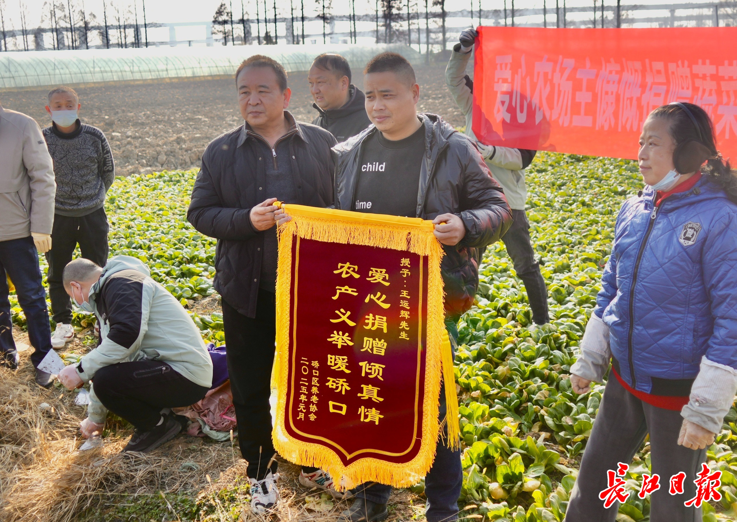 “希望这些菜尽快让有需要的老人和困难人群能吃上。”王运辉说。硚口区养老协会工作人员现场给他赠送了一面锦旗,对其善举表示感谢。