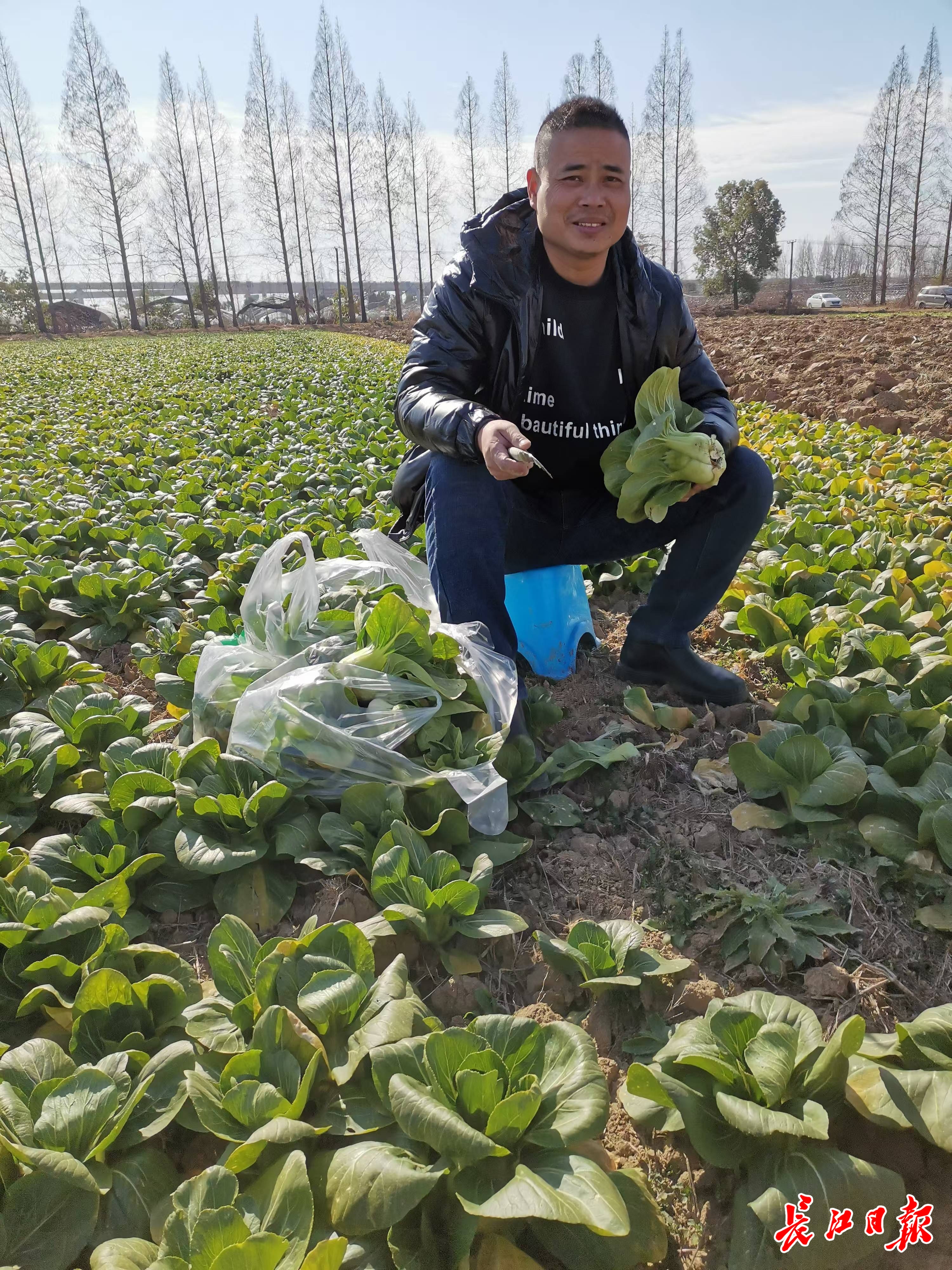 长江日报大武汉客户端1月12日讯(记者史强)12日上午,东西湖区新沟镇街道六渡村一处有机蔬菜种植基地来了不少人,他们自带小板凳和铲刀来免费采收时令蔬菜,37岁的王运辉却觉得人来得还是“有点少”。