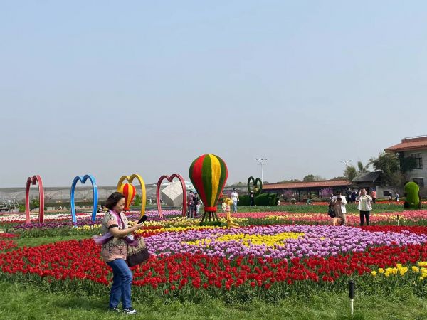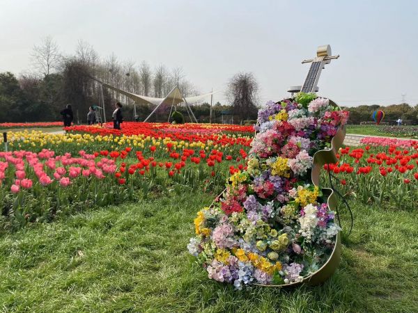 郁金香主题公园的郁金香花海中,遍布着造景和绿雕。 长江日报记者蔡欣星 摄