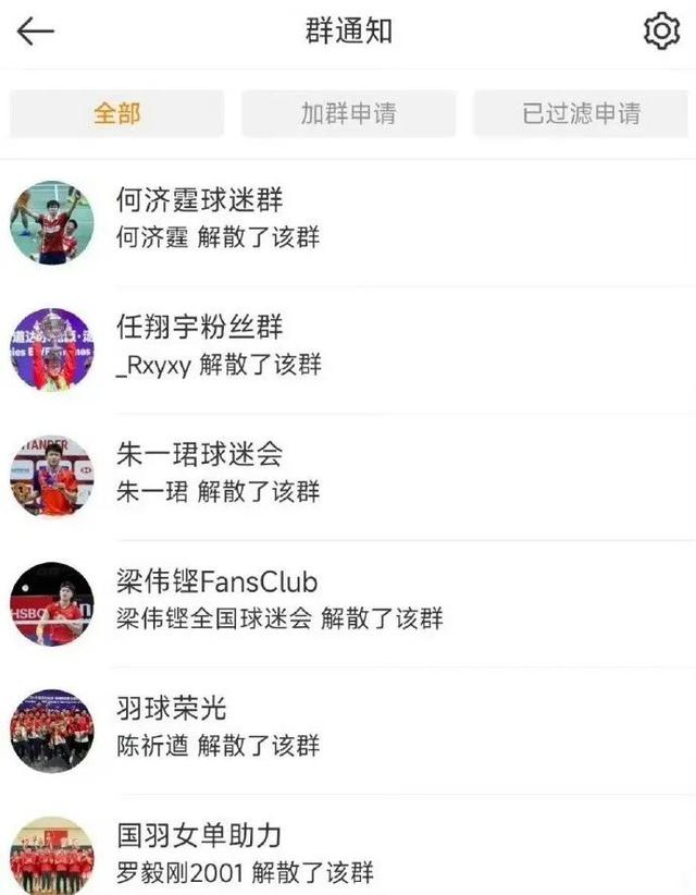 1月11日开始,包括中国羽毛球队官博,运动员王昶、梁伟铿、何济霆、任翔宇、朱一珺,教练陈其遒、罗毅刚等陆续解散粉丝群。