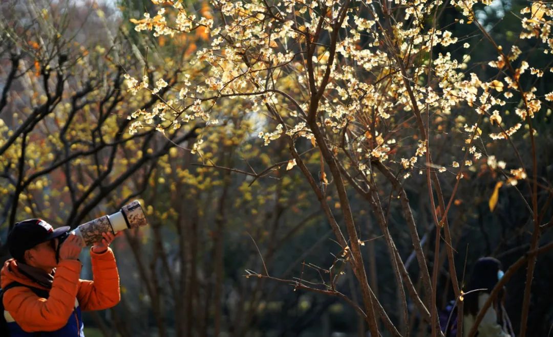 蜡梅开了,点点花朵缀满枝头,引得不少游人拍照。1月17日摄于解放公园。