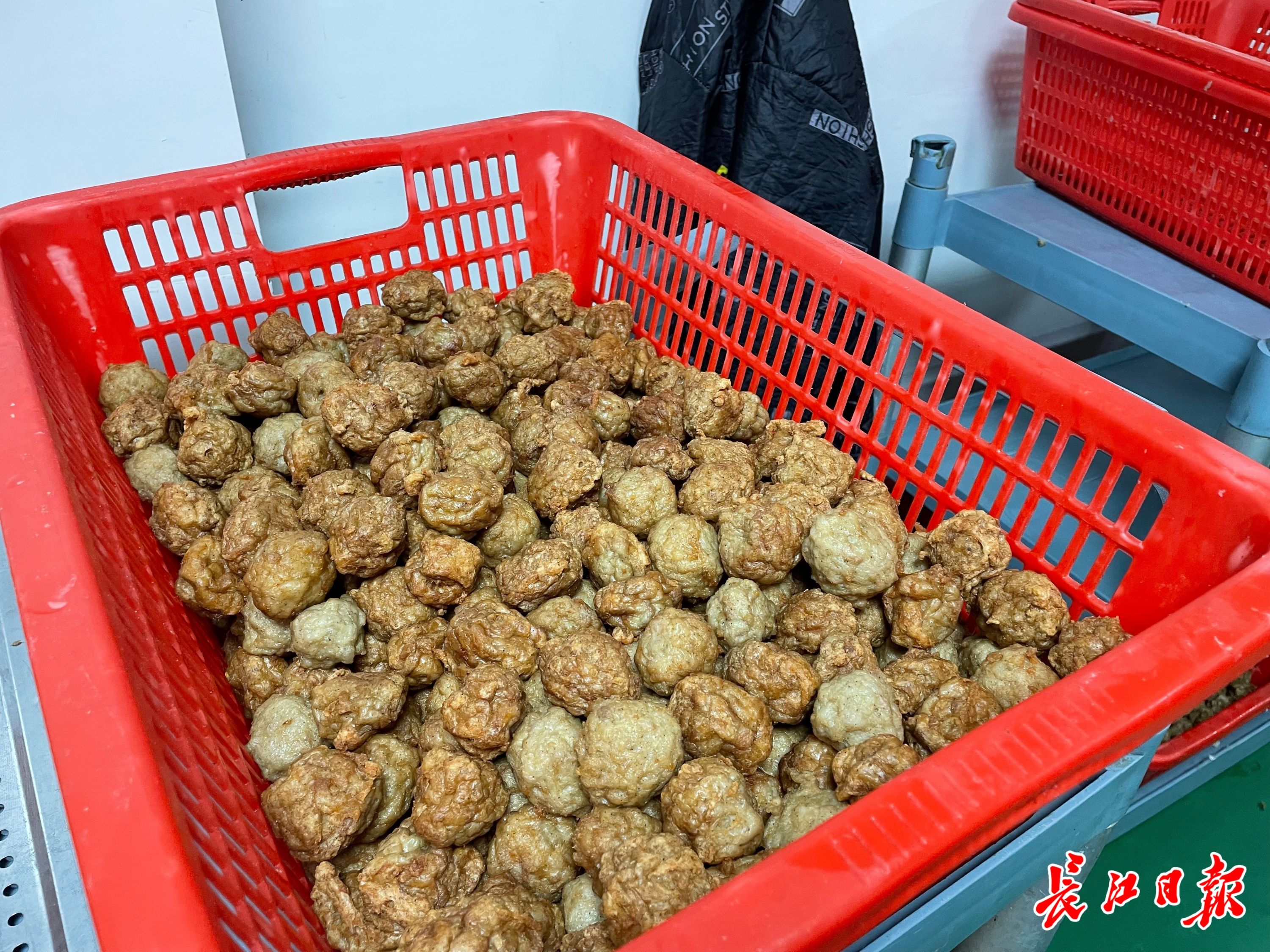 最后,鱼圆、肉圆、肉糕还要经历降温、清洗、烘干、擦净等一系列工业化流程,成为包装好的“黄陂三鲜”,运送给各大一线经销商,进入终端市场,最后摆上市民家庭的年饭餐桌。
