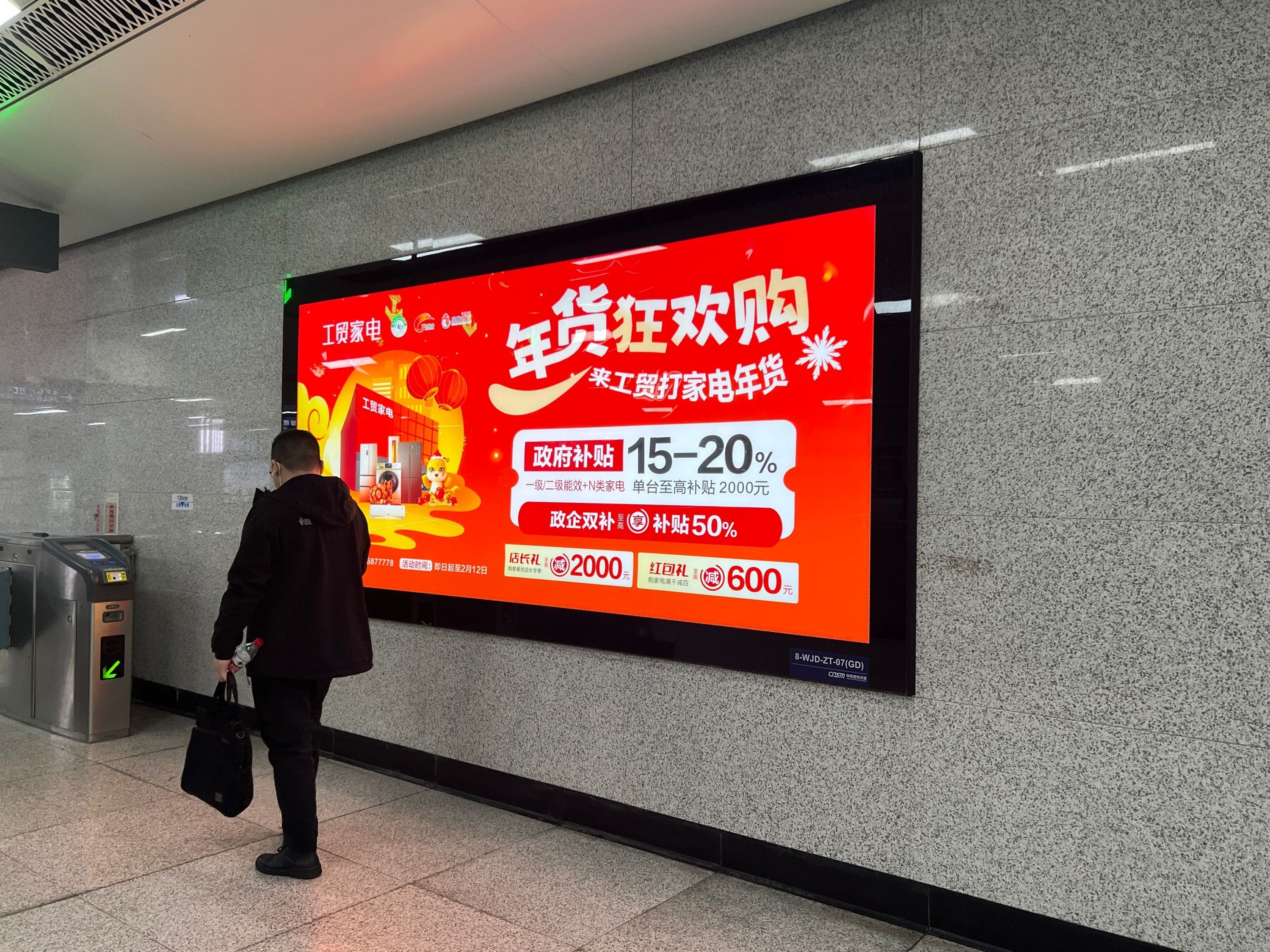 汪家墩群星城地铁口的广告牌也在宣传以旧换新补贴。雷心蕊 摄