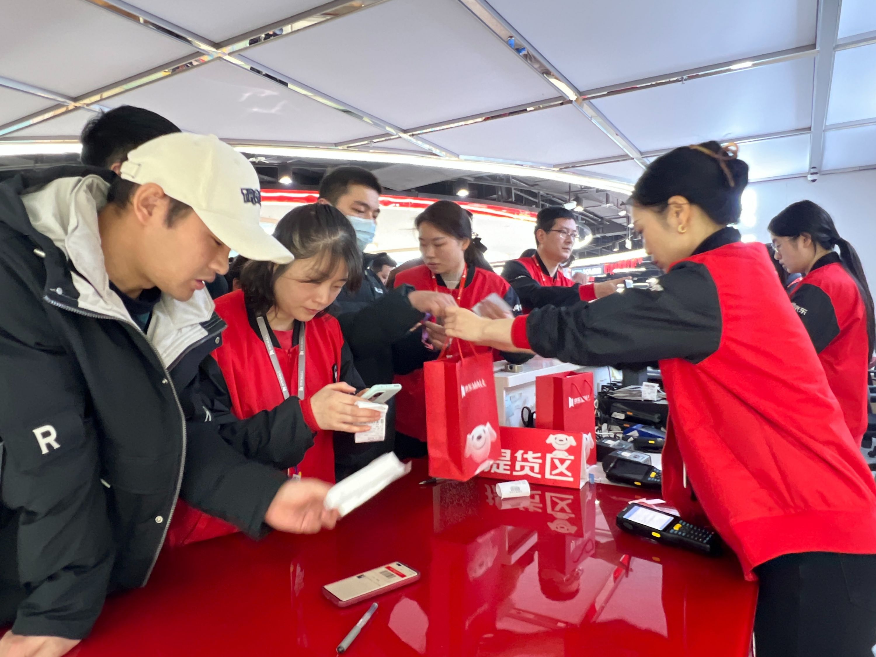 “与平时相比,今天的客流量翻了好几倍,大半天就卖出了近百部手机。”该门店店长夏浩透露,昨天下午4时左右,便有不少赶着回老家的市民来购买新手机。随着数码产品购新补贴的活动消息传开,今天店铺人流量迎来高峰,一些“急性子”的市民甚至清晨就在门口等待开业。“正逢过年,大家都有需求。现在还有不少上班族打电话或发信息来,准备当天下班后到门店购买。”他表示,店铺销量远超预期,为了让消费者不“跑空”,今天计划将营业时间延长到晚上8时。