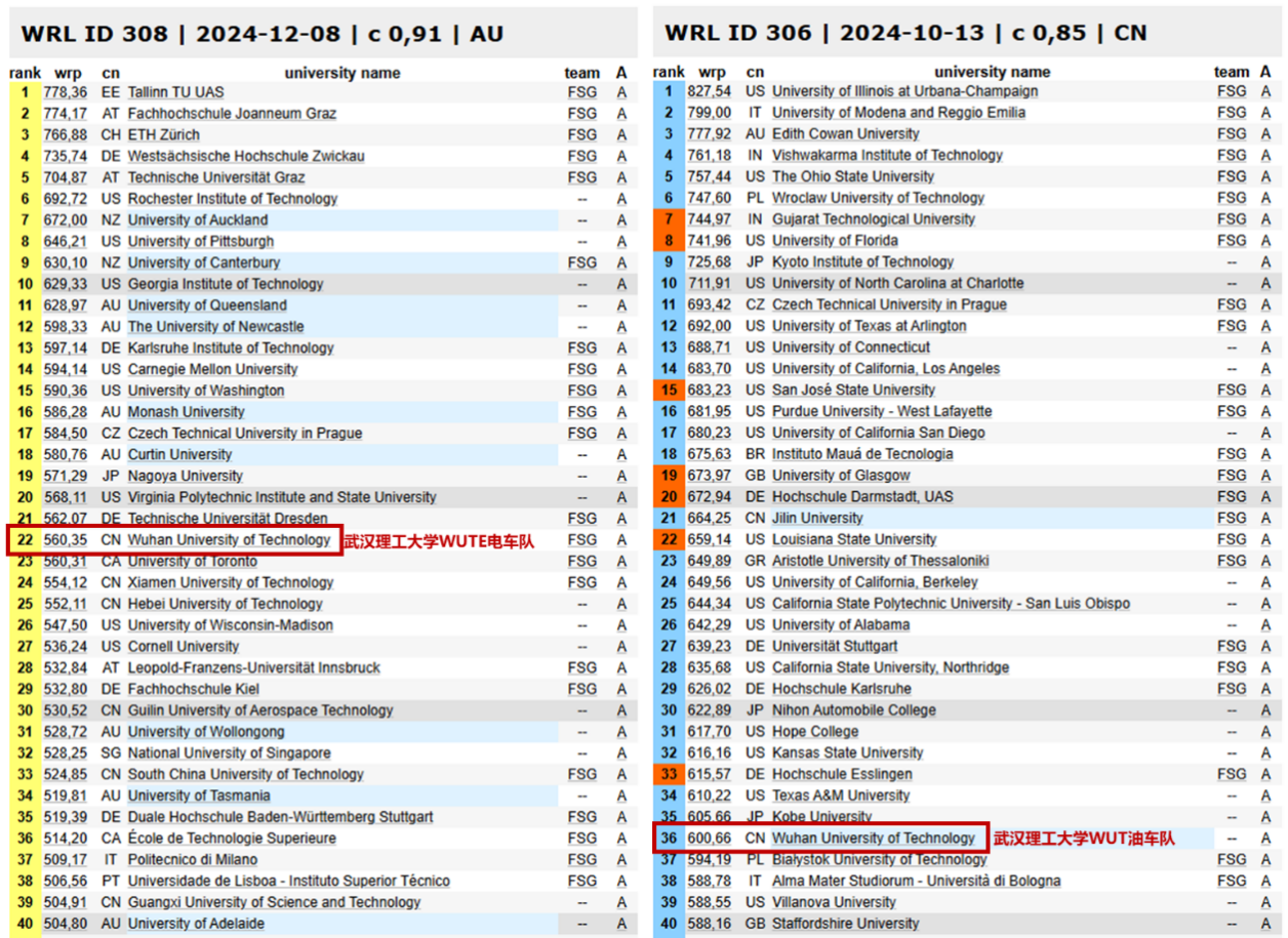 大学生方程式系列赛事,武汉理工大学世界排名。