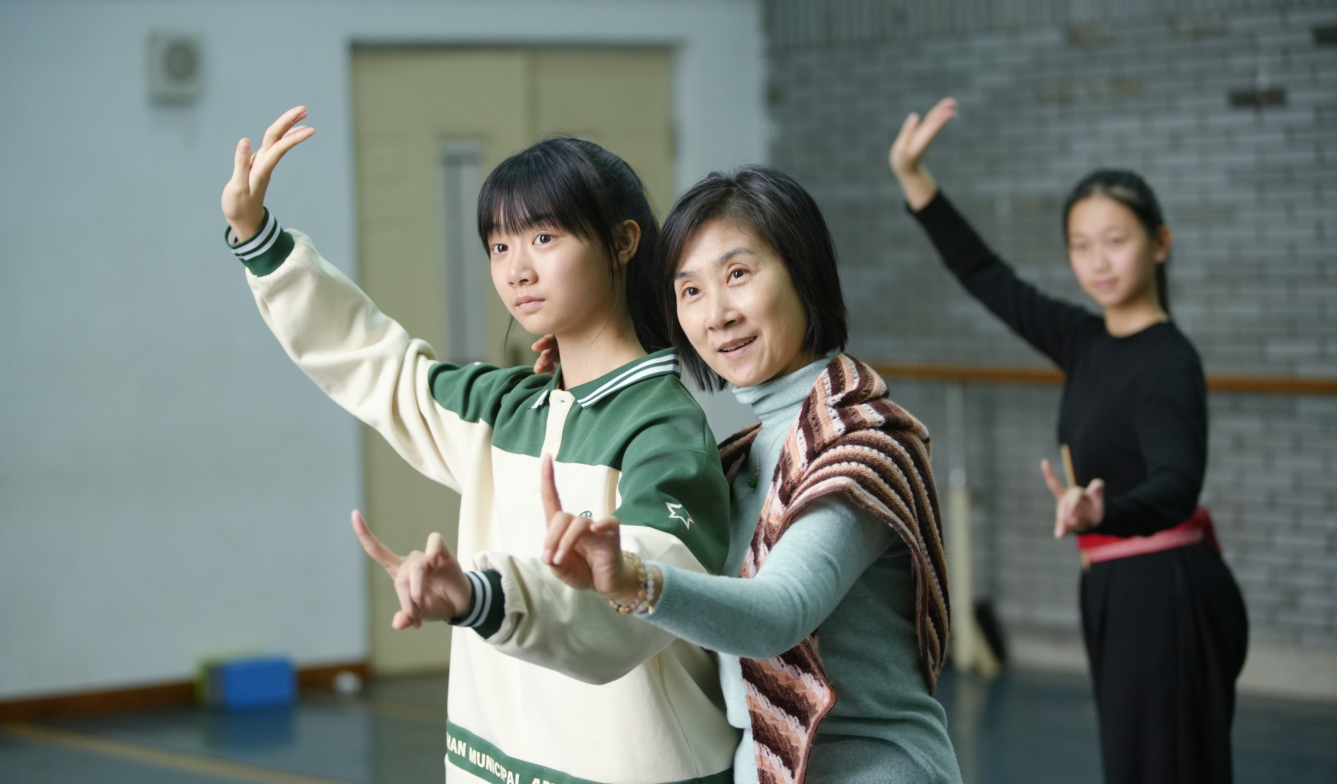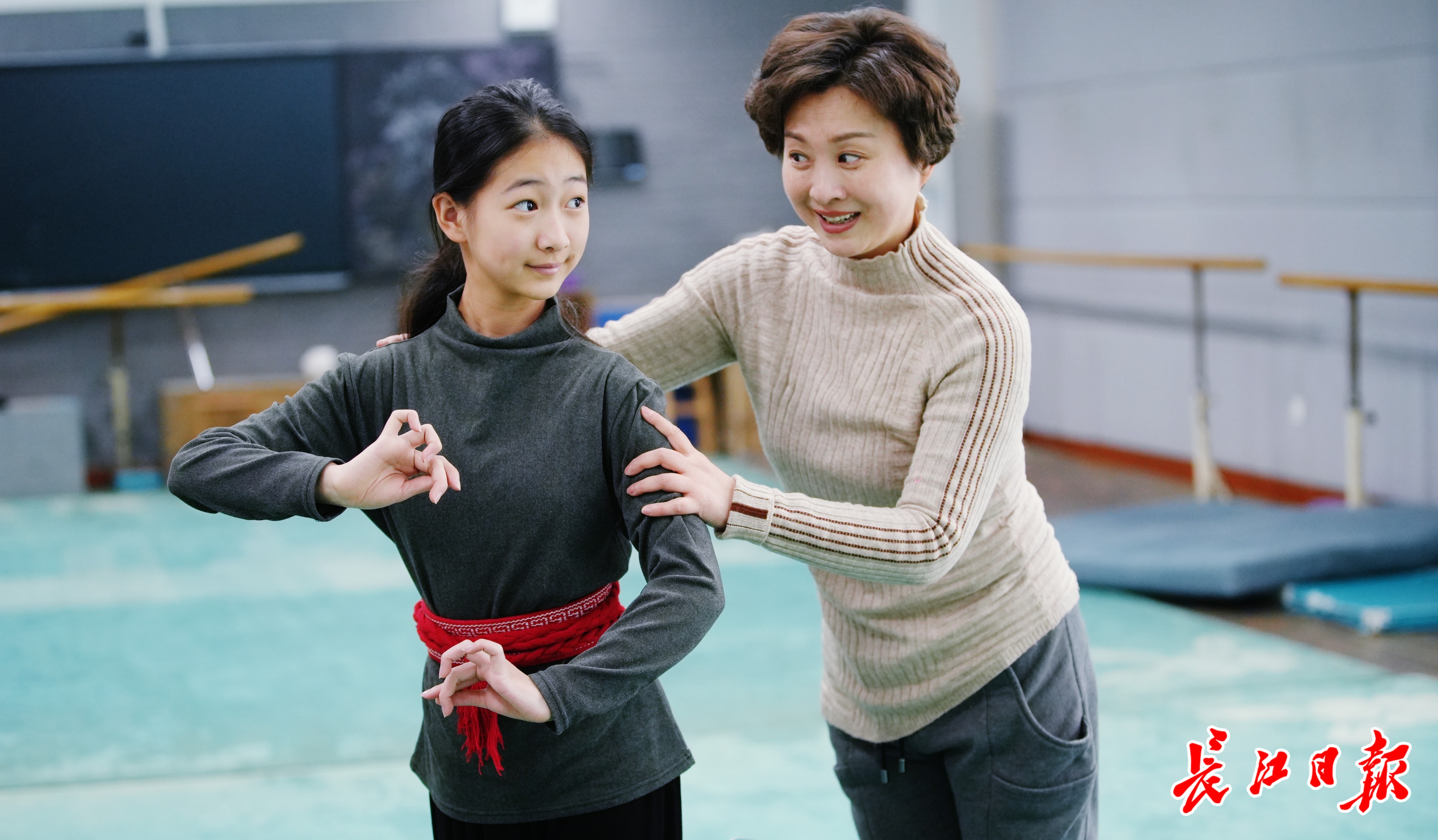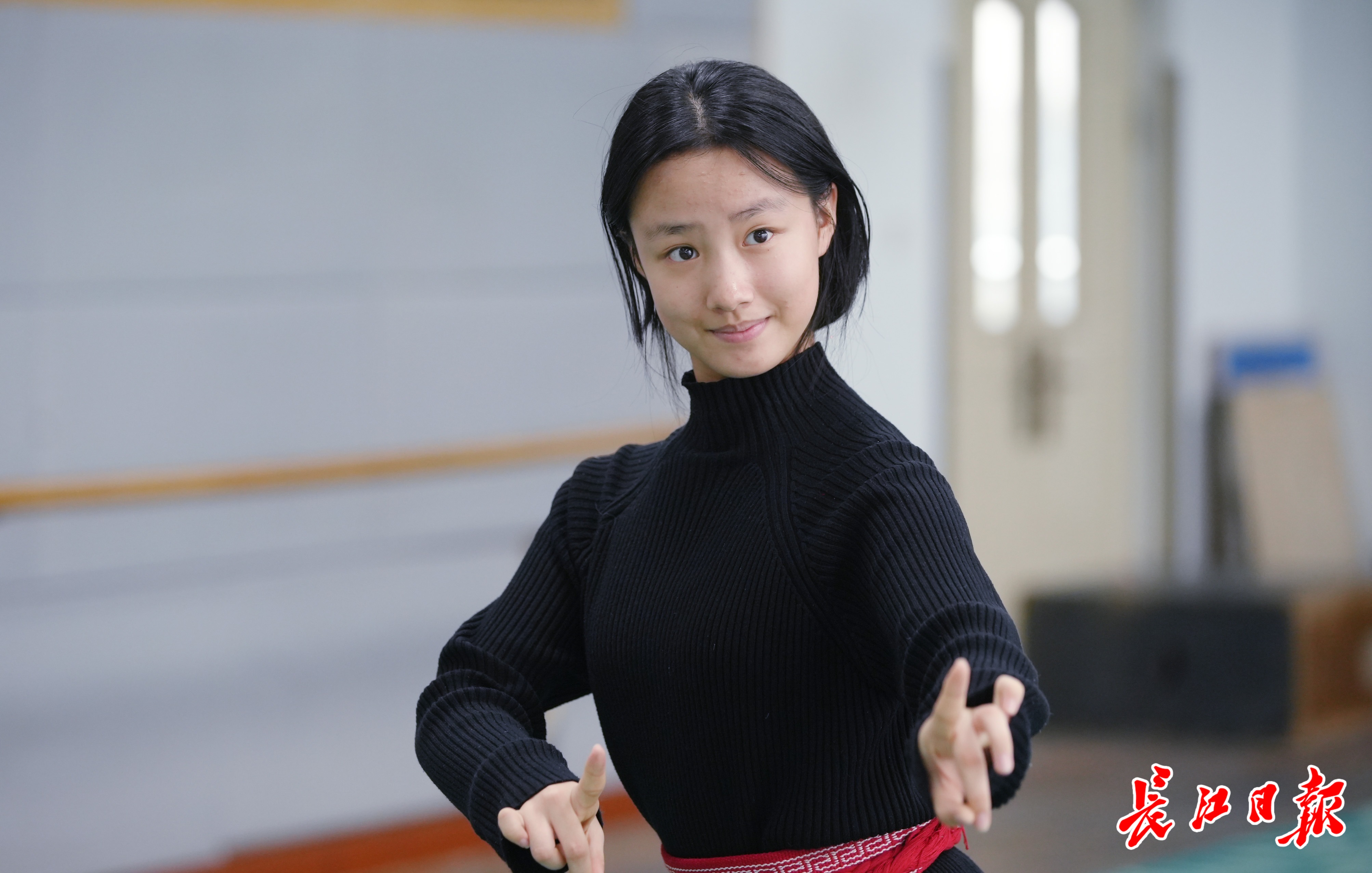 14岁的李盈嫒腰上缠着红布,红布前后各插着一支长筷子,抵着前胸后背,让上肢保持挺直状态。“明月几时有,把酒问青天……”楚剧学员声乐课的歌声萦绕在教室里。李盈嫒说:“我要更努力,以后做一名优秀的楚剧演员。”