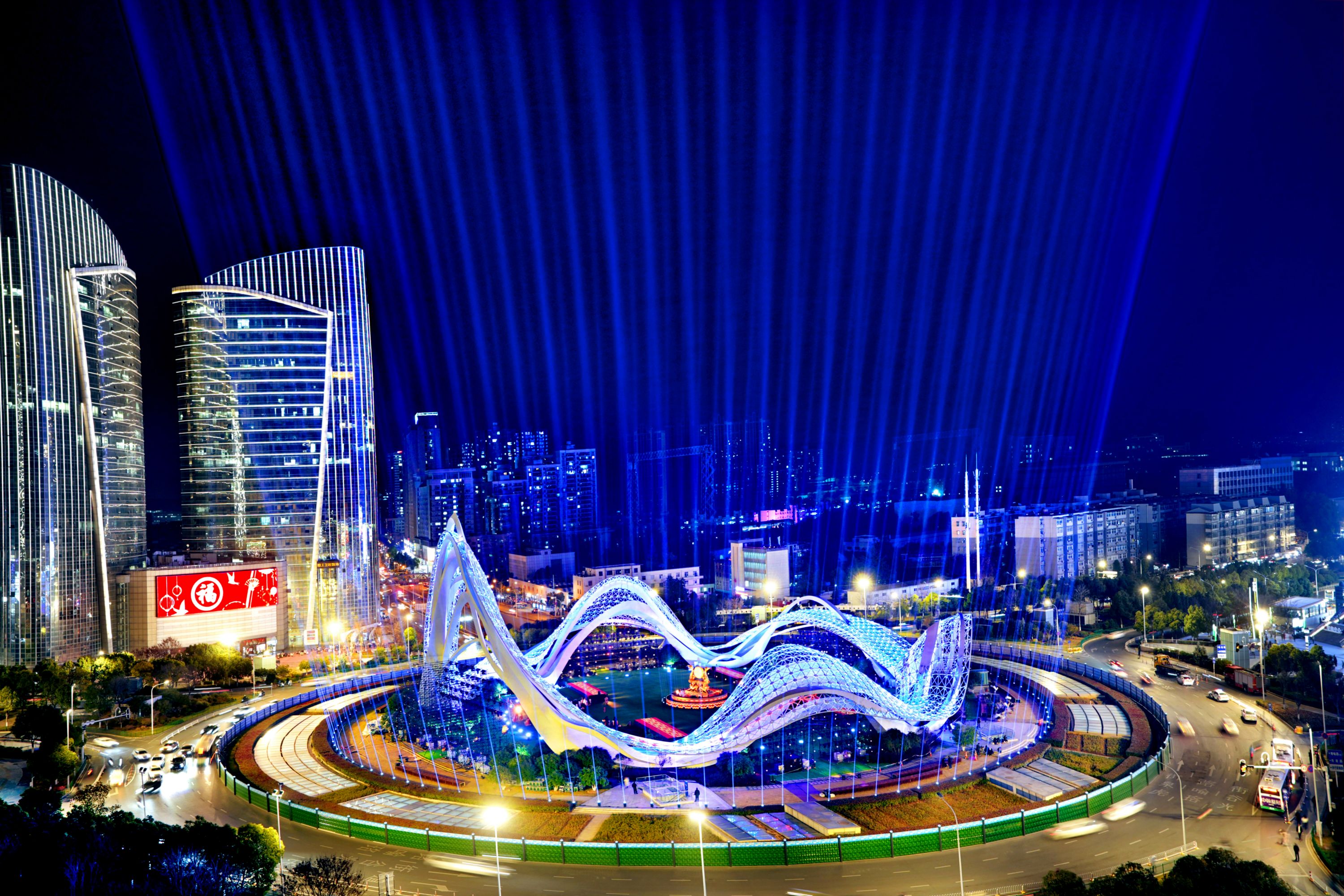 光谷星河广场流光溢彩。 通讯员产启斗 摄